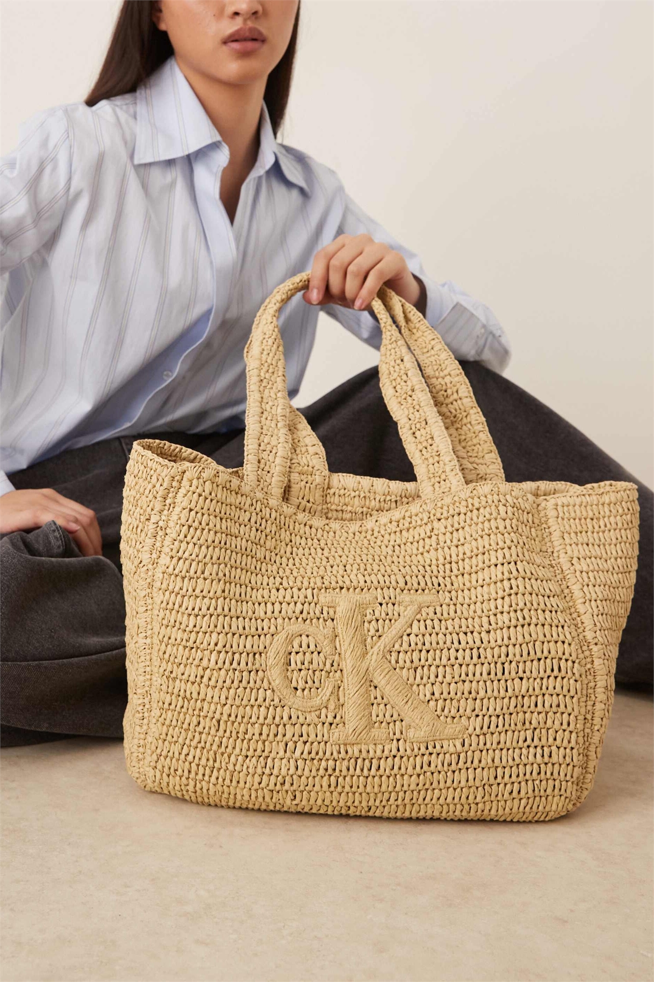 Сумка-тоут из рафии с логотипом среднего размера