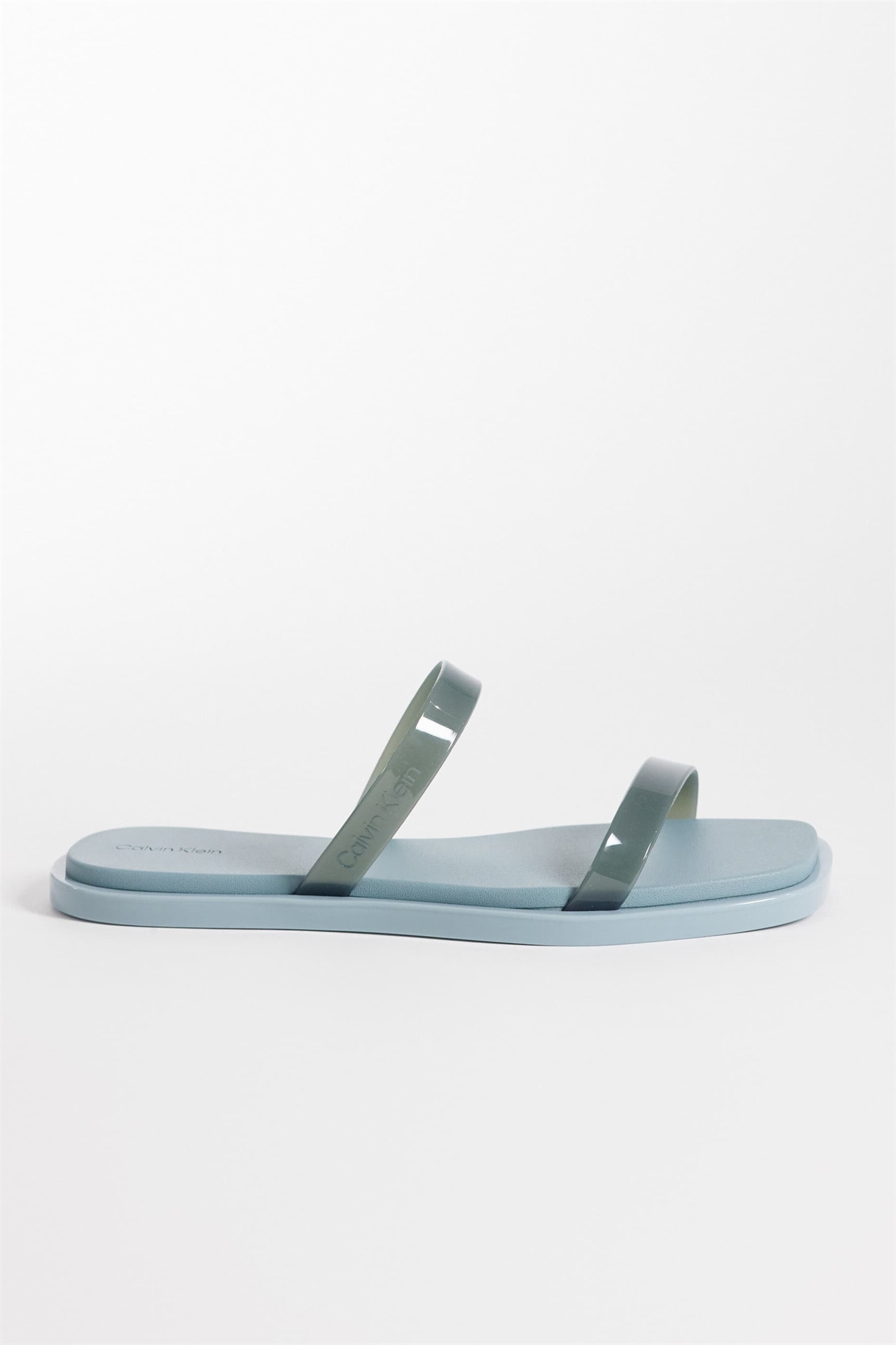 Джинсовые сандалии на двух ремешках из прозрачного пластика