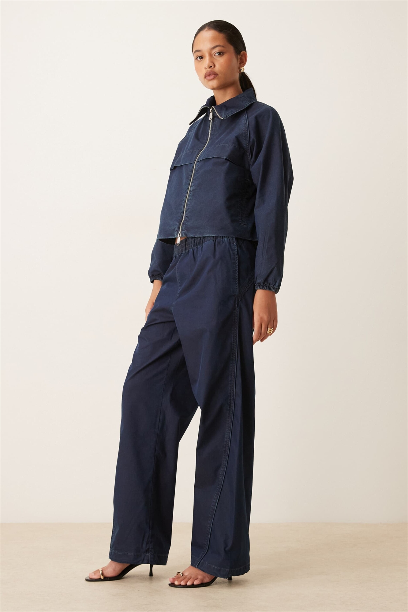 Брюки из денима и парашютного нейлона co-ord