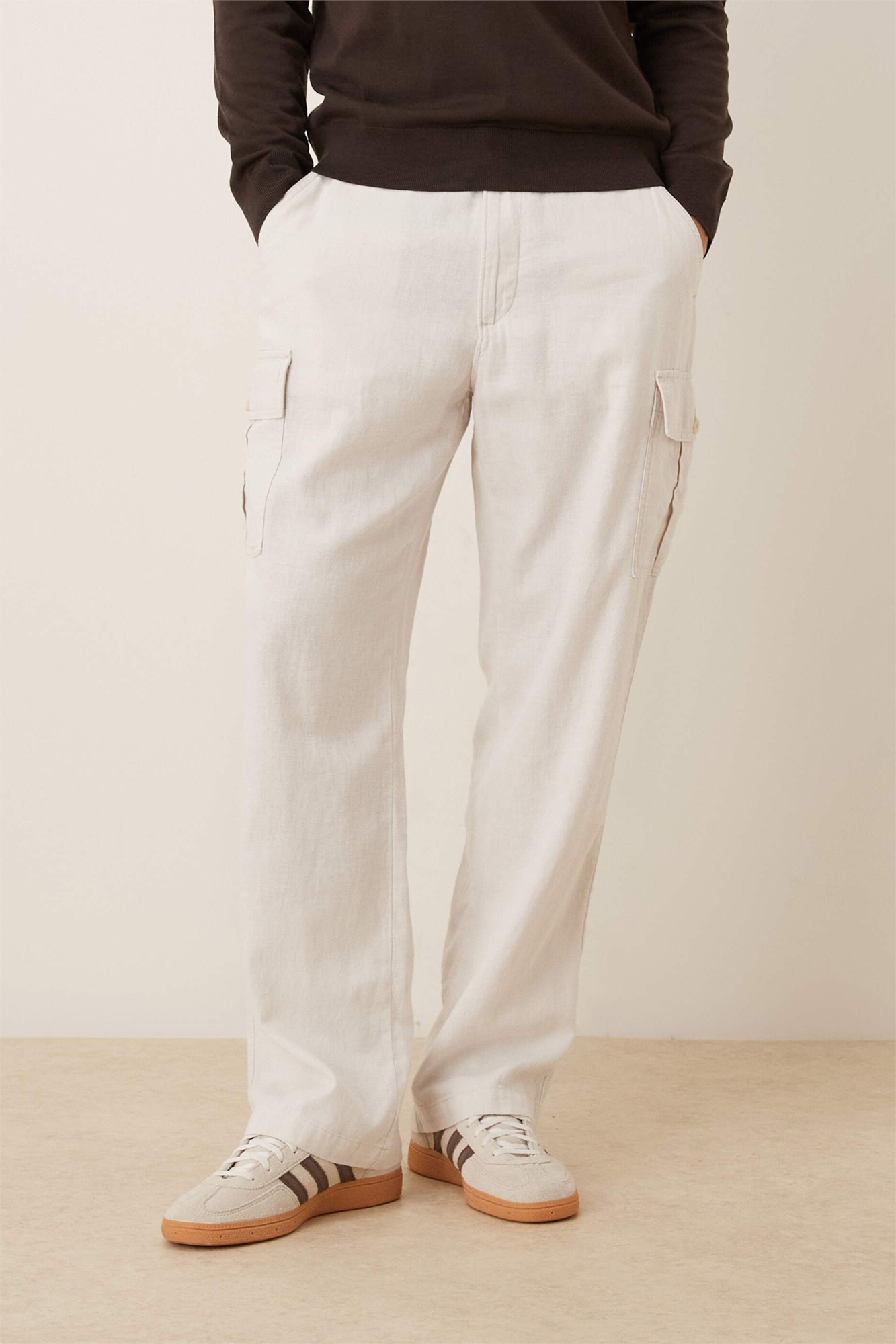 Брюки-карго свободного прямого кроя из смешанного льна
