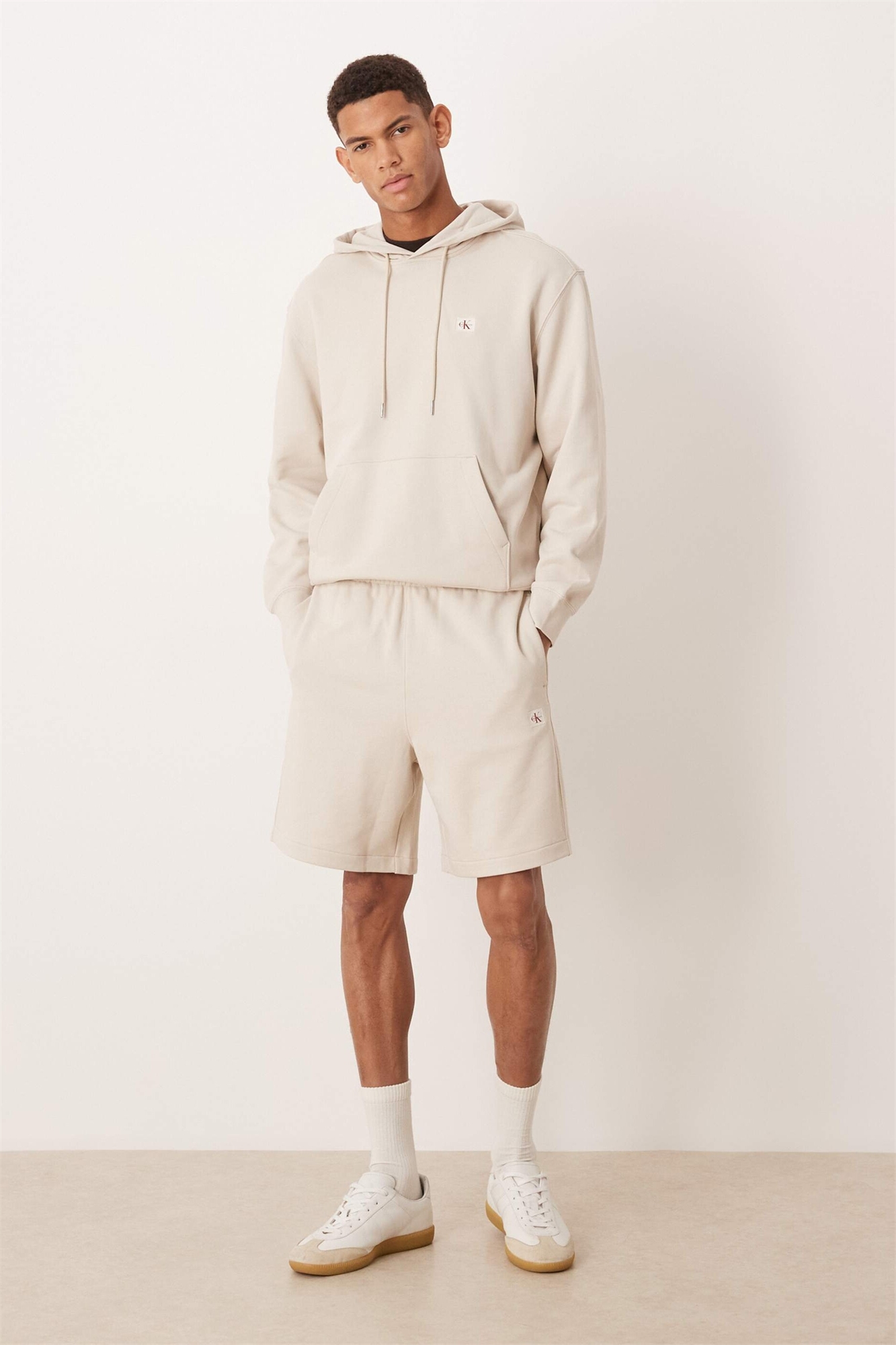 Шорты из махровой ткани с эмблемой, кремового цвета