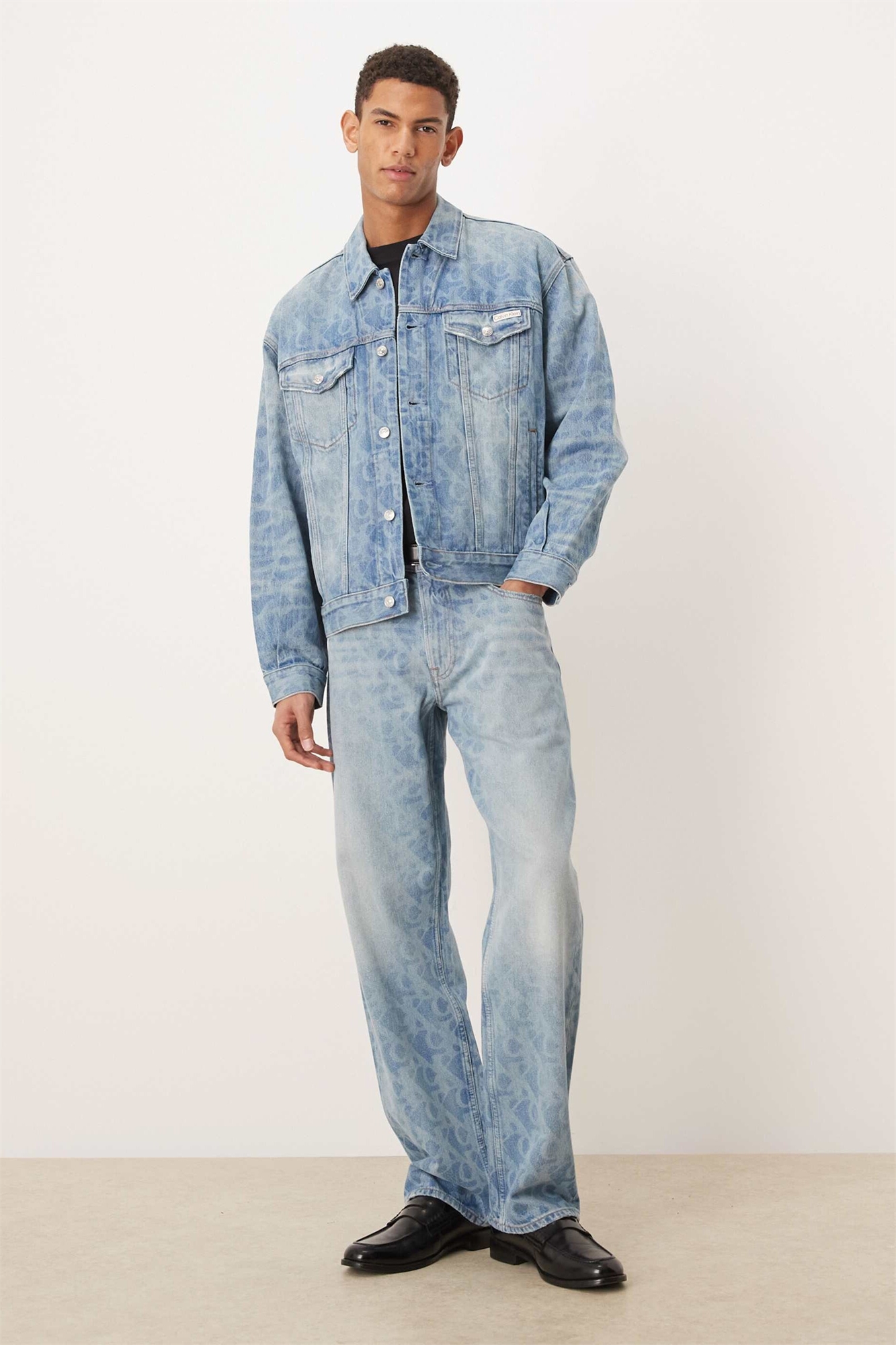 Джинсы прямого кроя с логотипом по всей поверхности в стиле 90-х