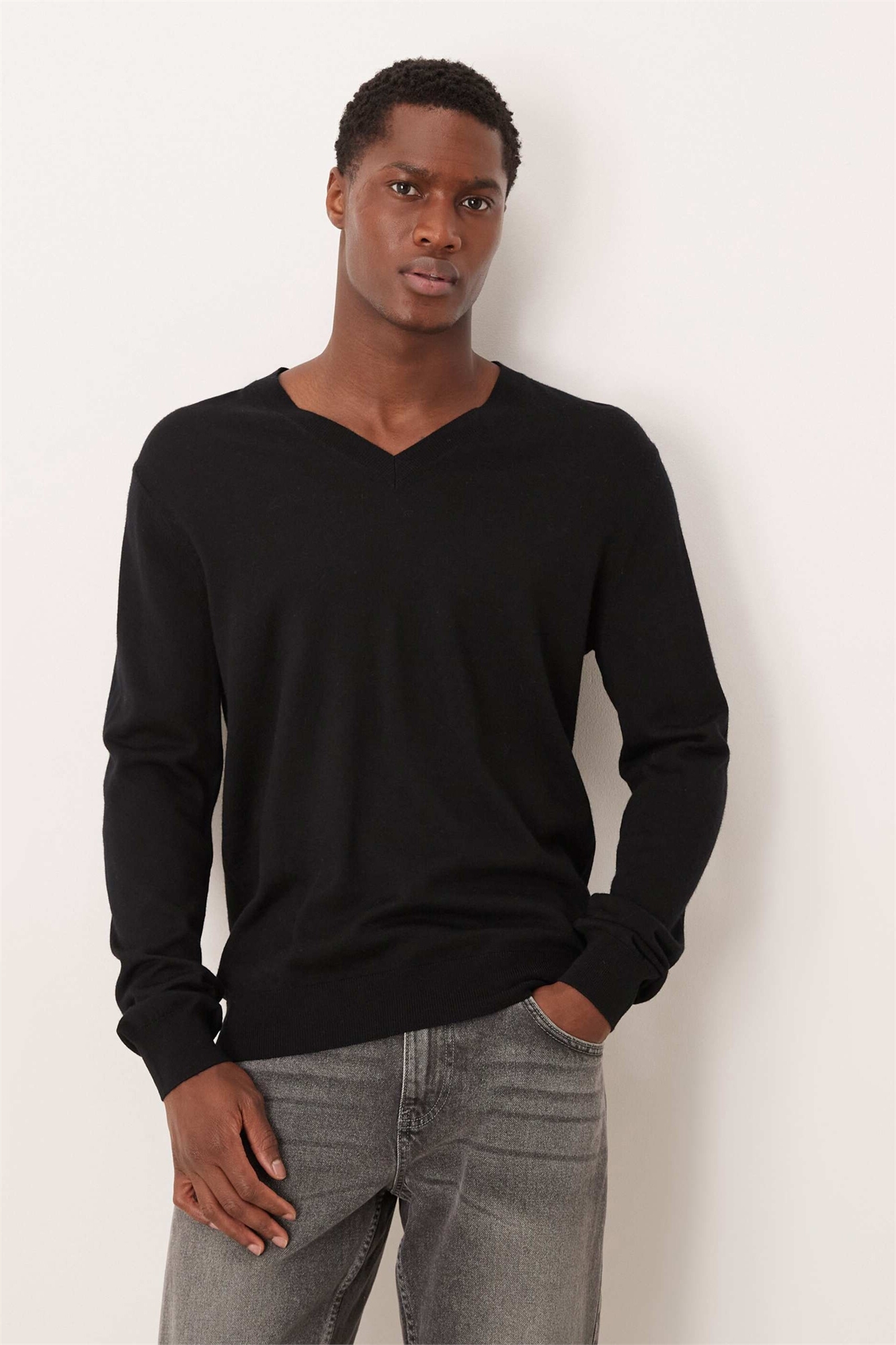 Легкий трикотажный топ с V-образным вырезом из 100% шерсти