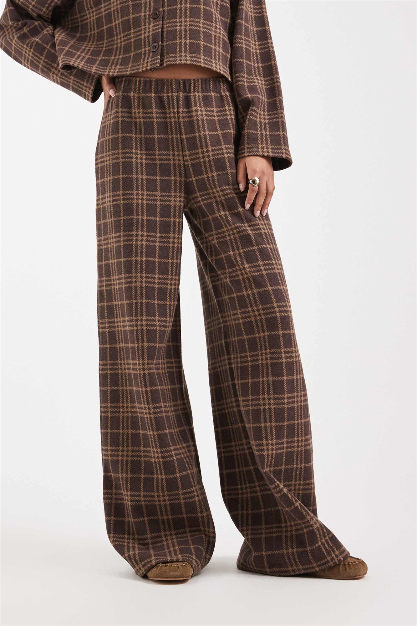 Брюки с мягкими ребрами и широкими брючинами