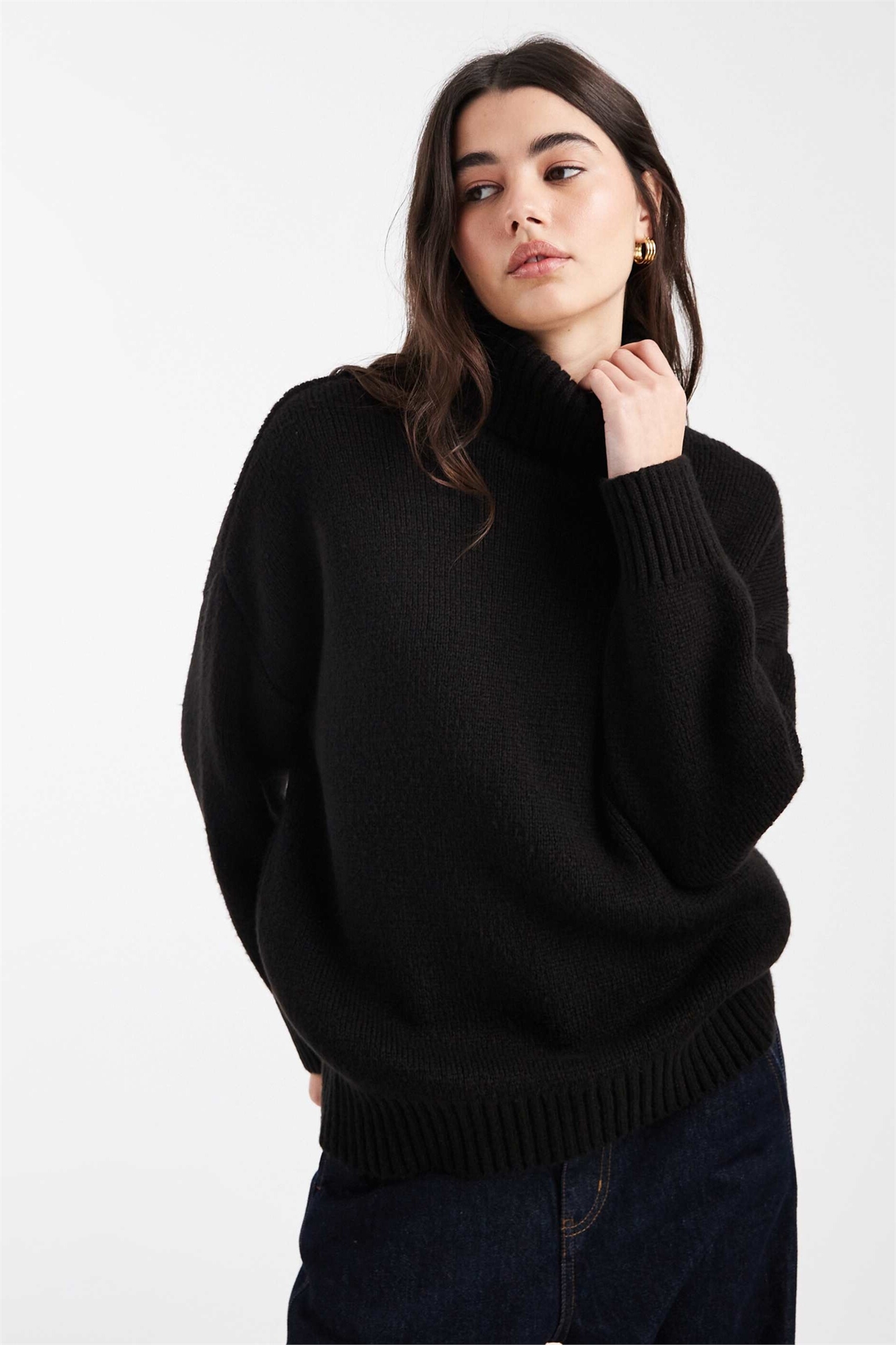 Свитер с высоким воротником и разрезом по бокам