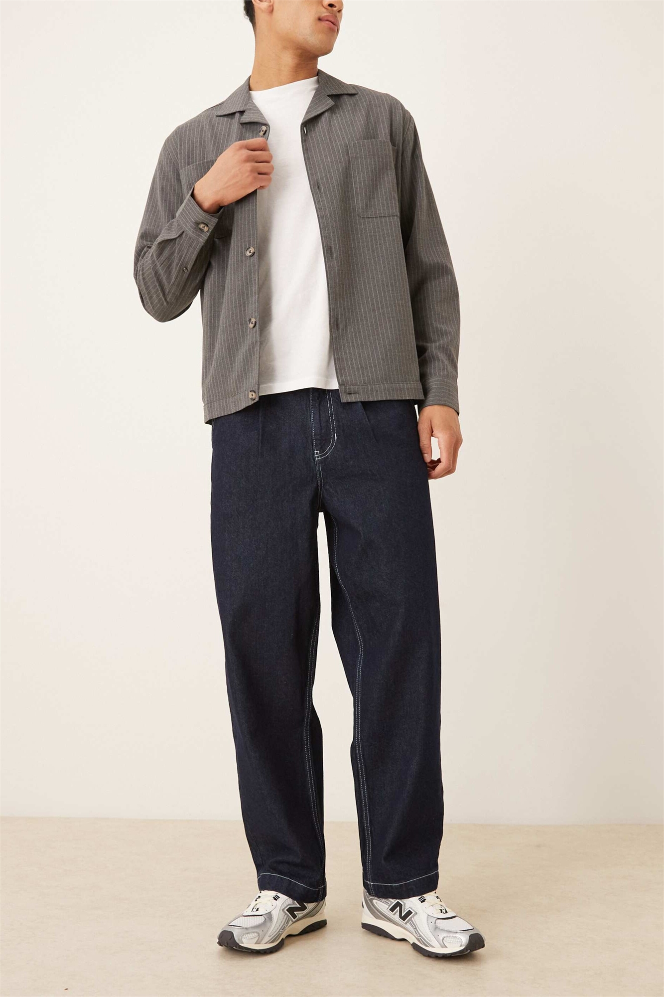 Джинсы свободного кроя с зауженными штанинами и складками