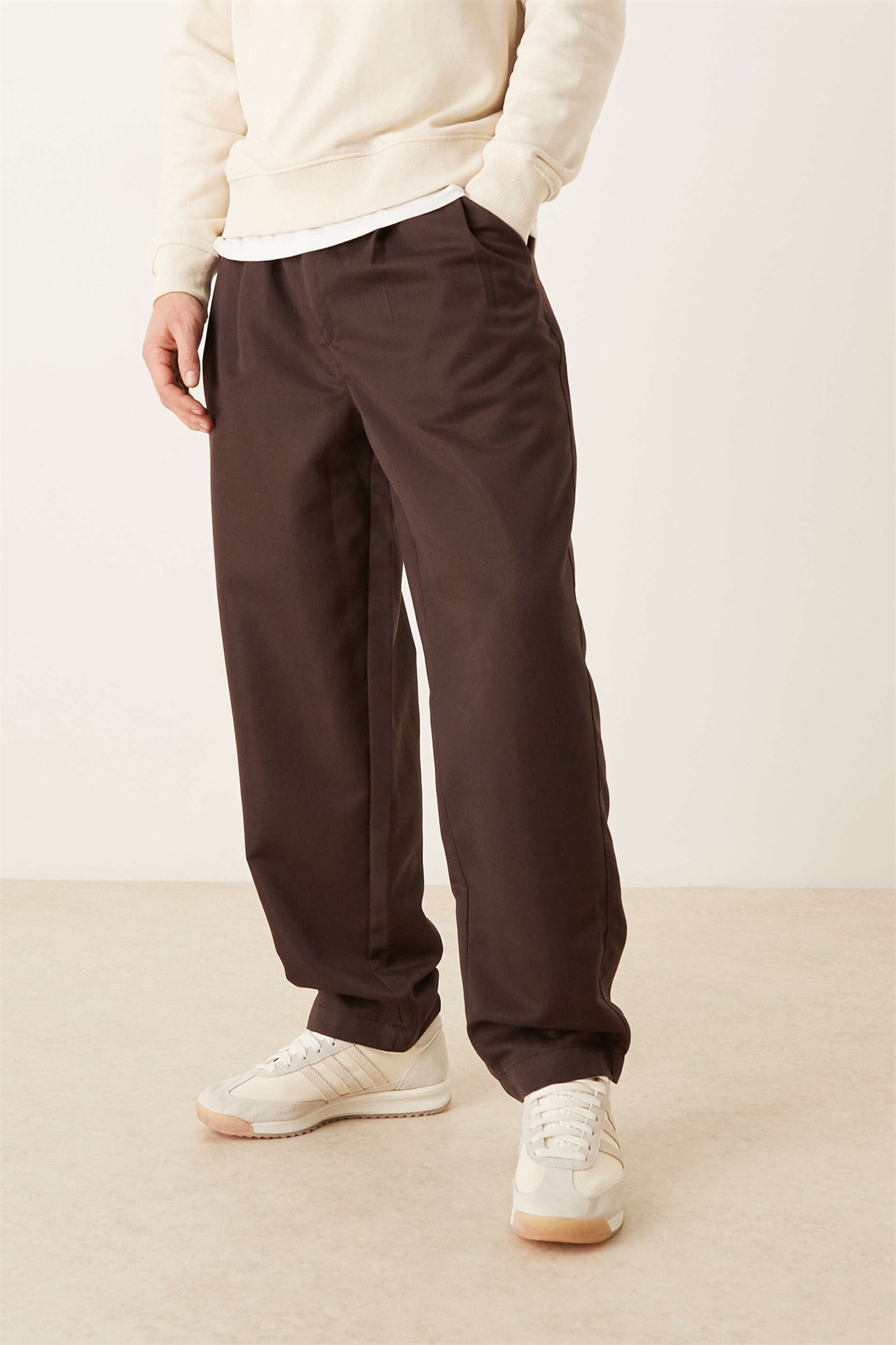 Брюки свободного кроя с зауженными штанинами и складками