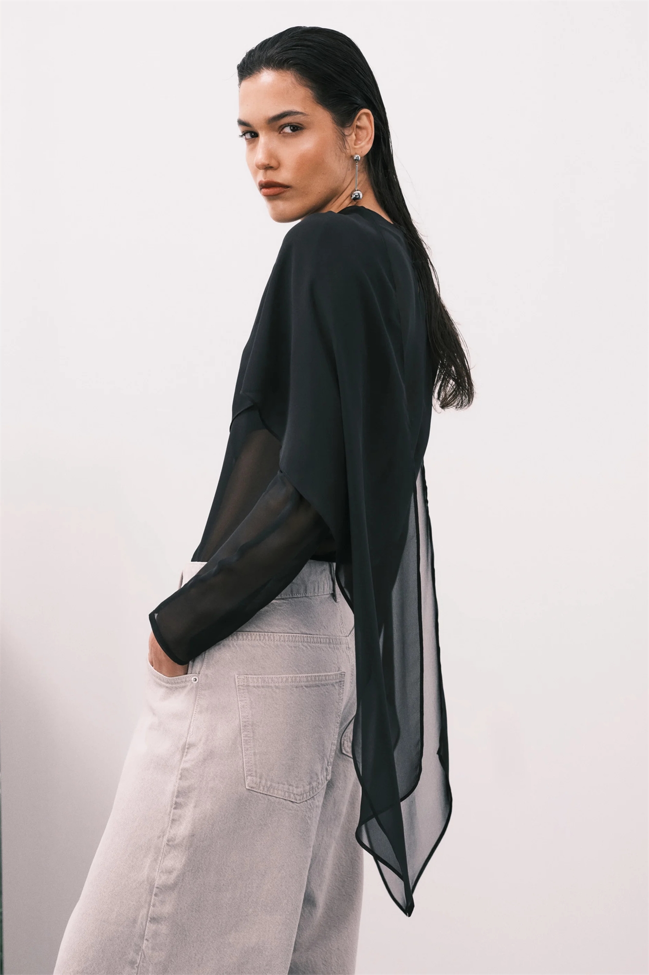 Блузка из прозрачной ткани с шифоновым шарфом