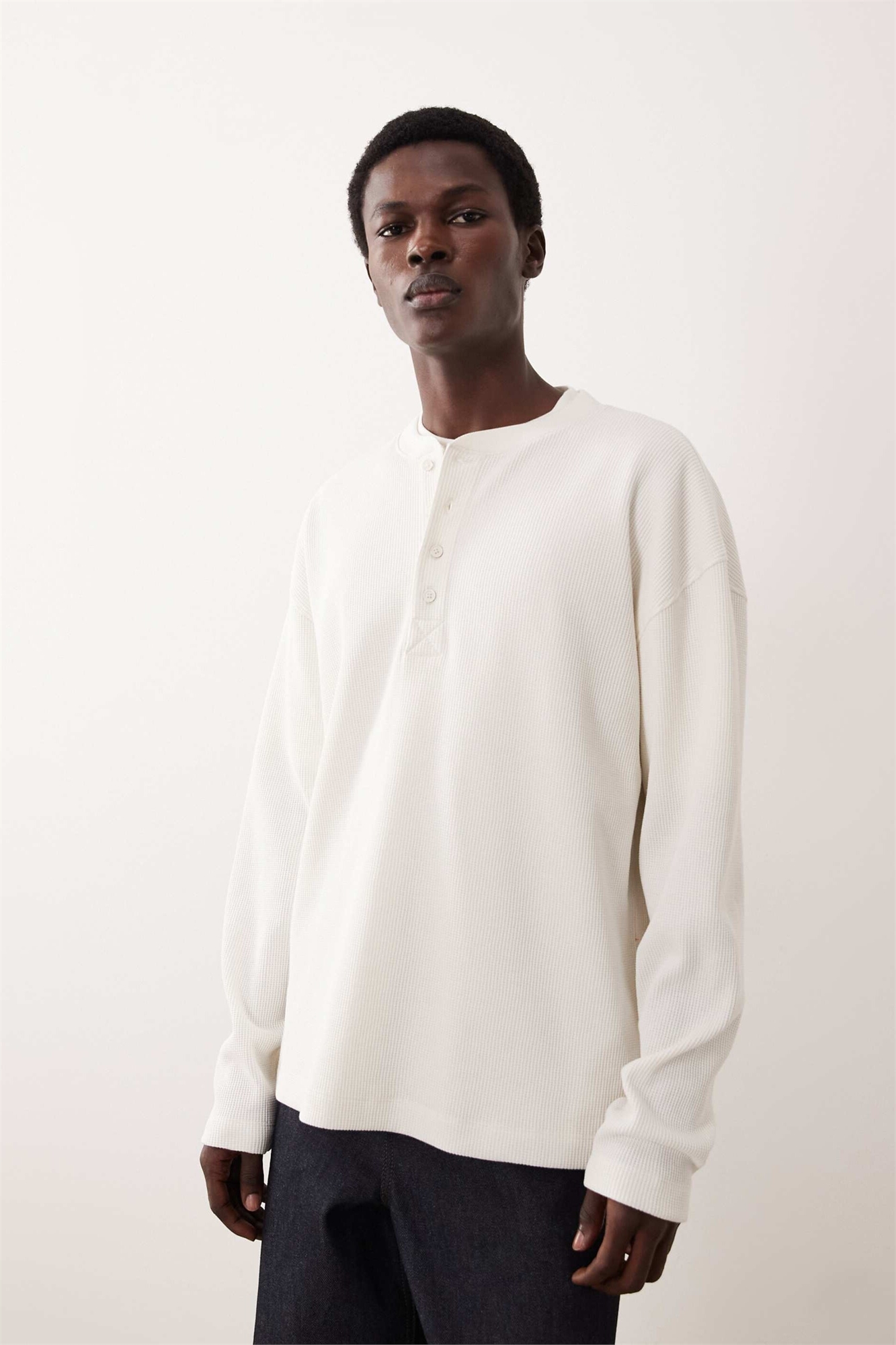 Футболка-хенли с длинным рукавом, свободного кроя, в стиле «вафля», в размере «супер-тяжелый»