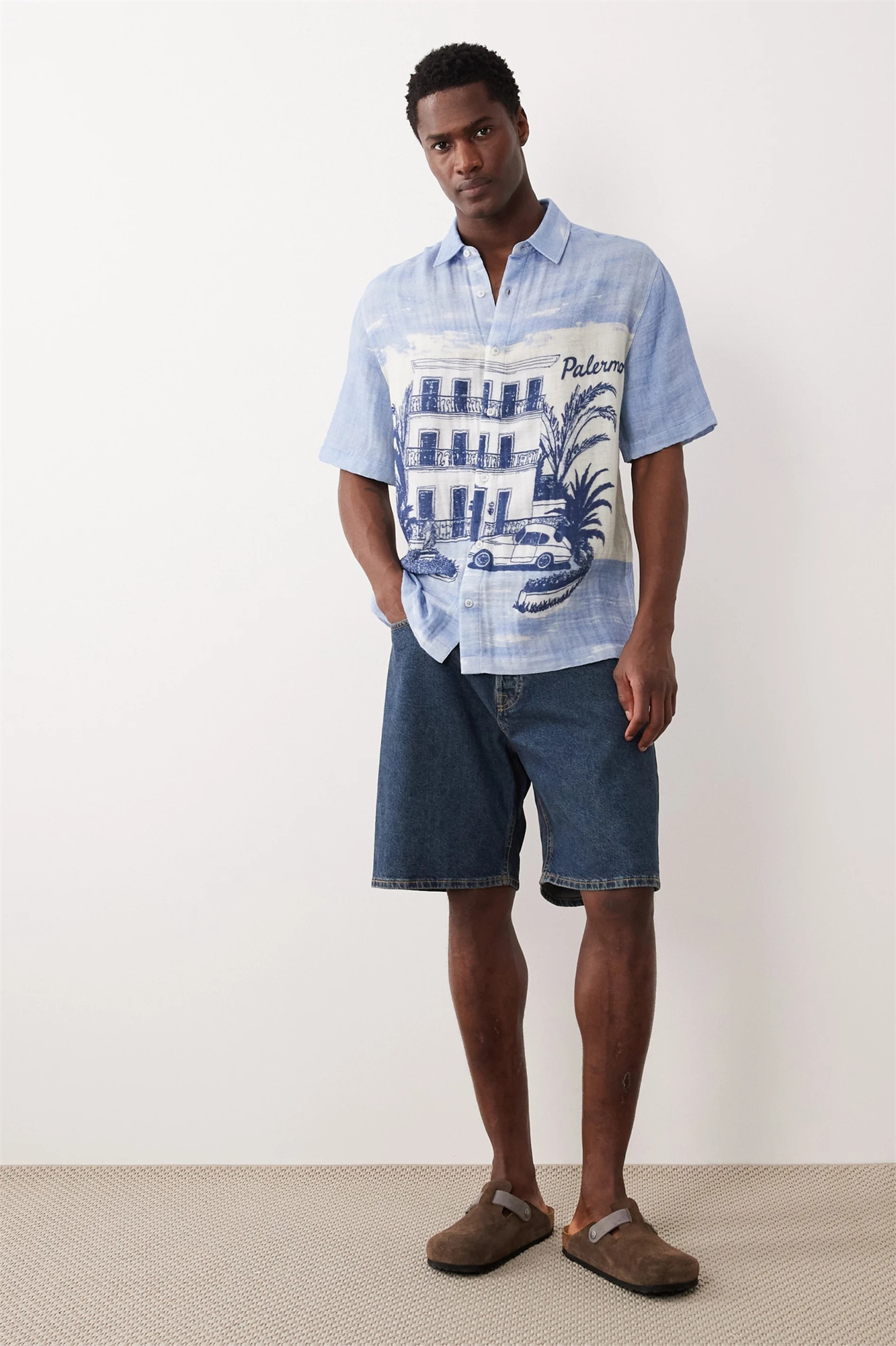 Рубашка свободного кроя с пляжным принтом