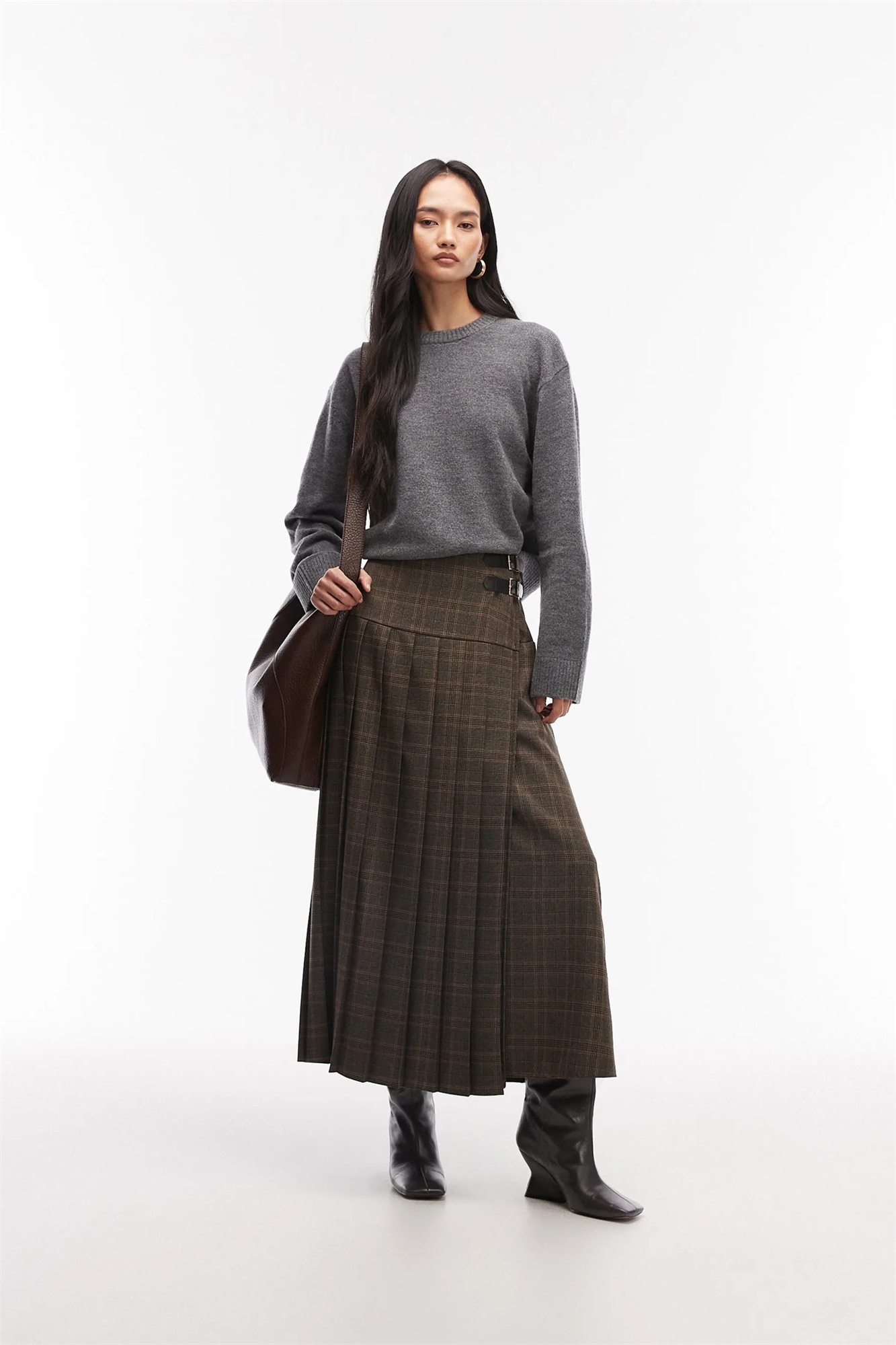 Юбка-килт средней длины с застежкой и складками