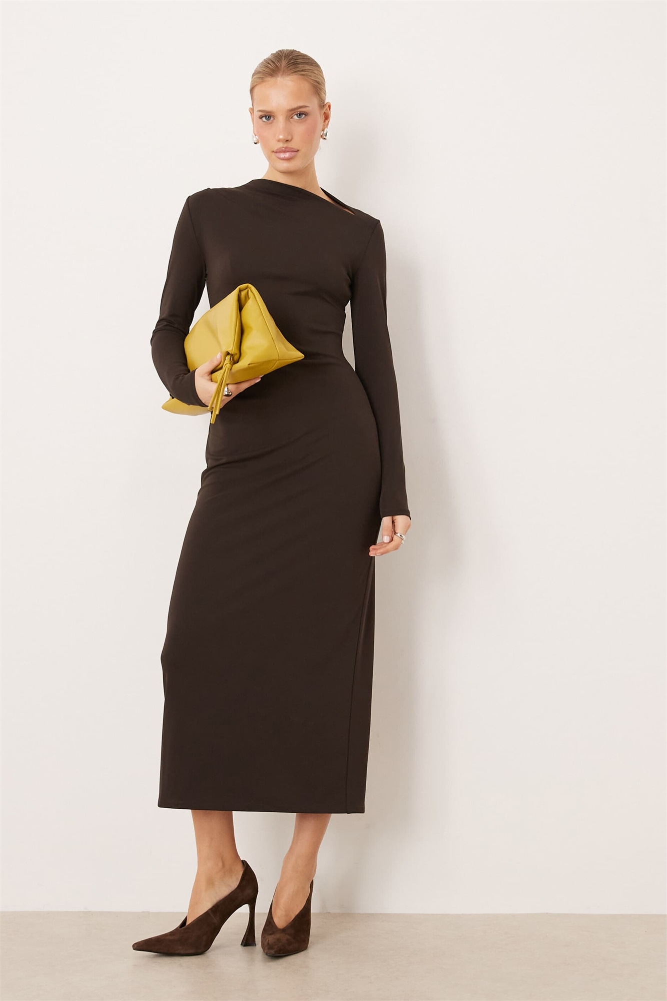 Макси-платье с V-образным вырезом и длинными рукавами