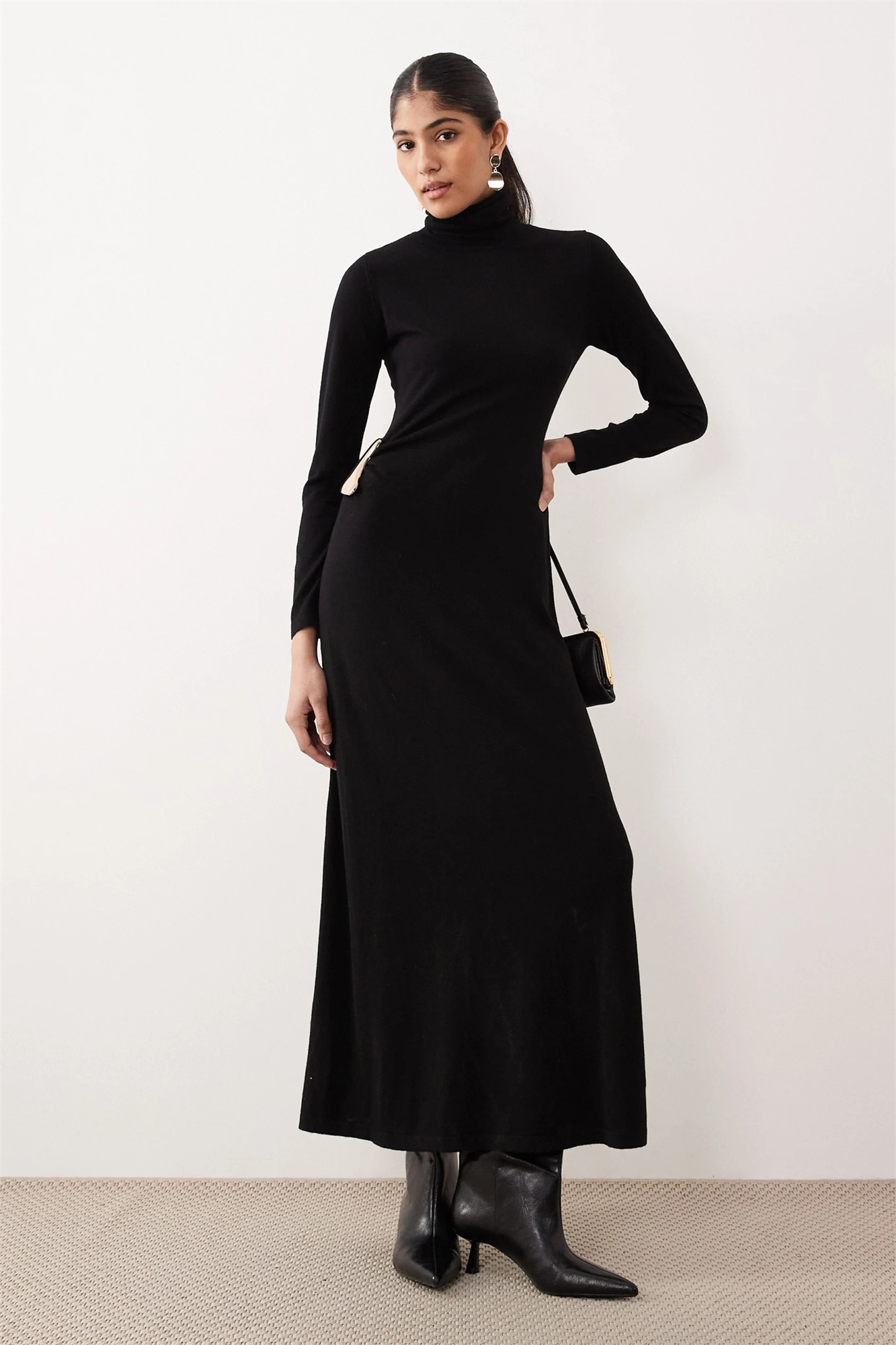Макси-платье с высоким воротником, длинными рукавами и металлическими элементами