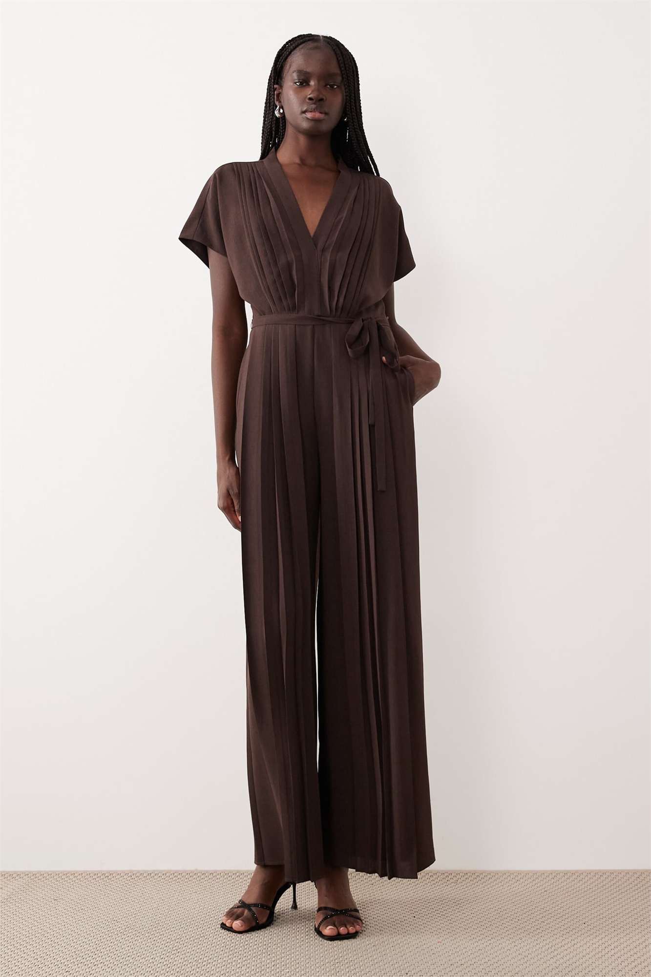 Комбинезон с короткими рукавами и плиссированными вставками