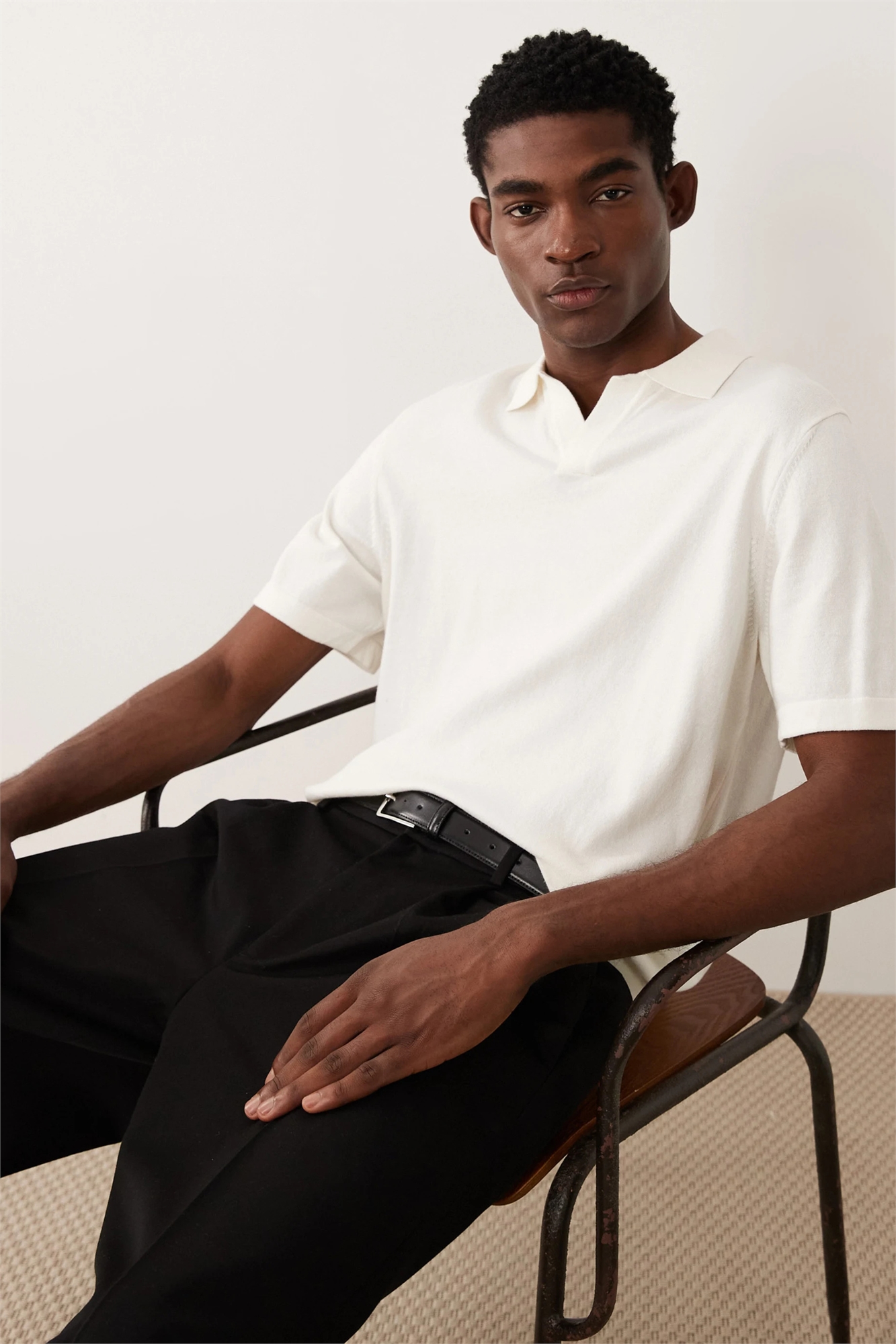 Полуформальная поло с вырезом из мягкого трикотажа из смеси хлопка