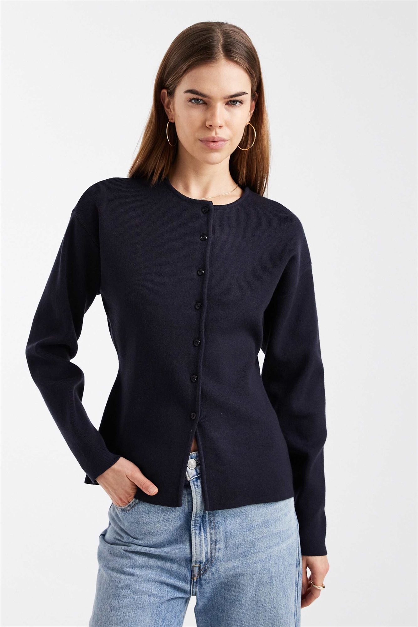 Вязаный кардиган с круглым вырезом