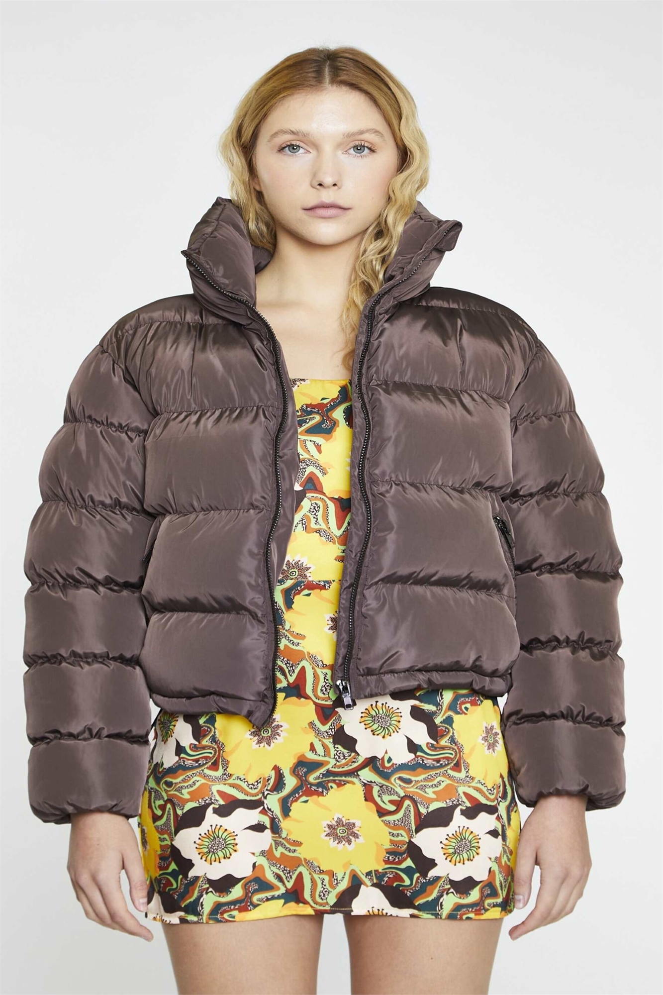 Куртка с длинными рукавами из пуховика шоколадного цвета