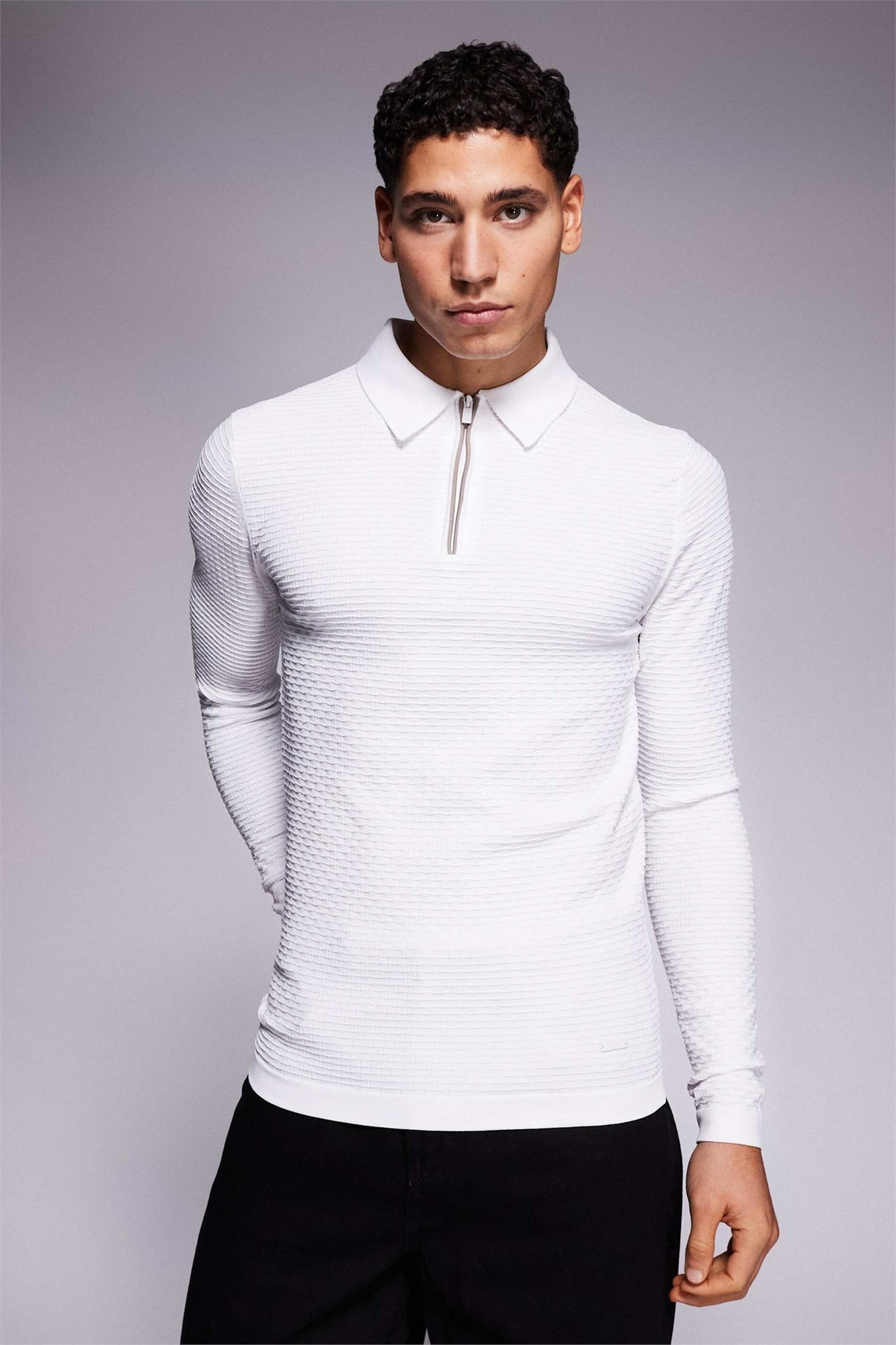 Трикотажная рубашка-поло с текстурной поверхностью и застежкой-молнией