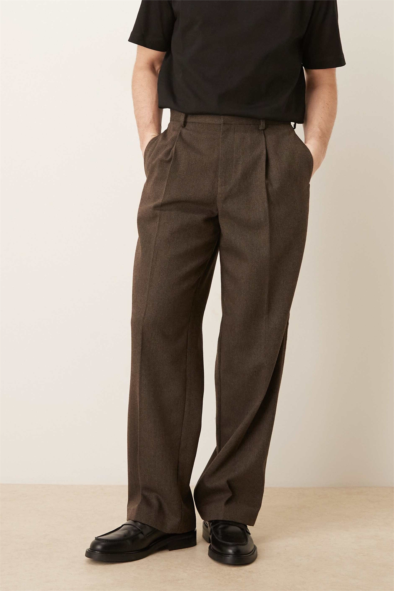 Стильные брюки с широкими брючинами и складками из шерсти