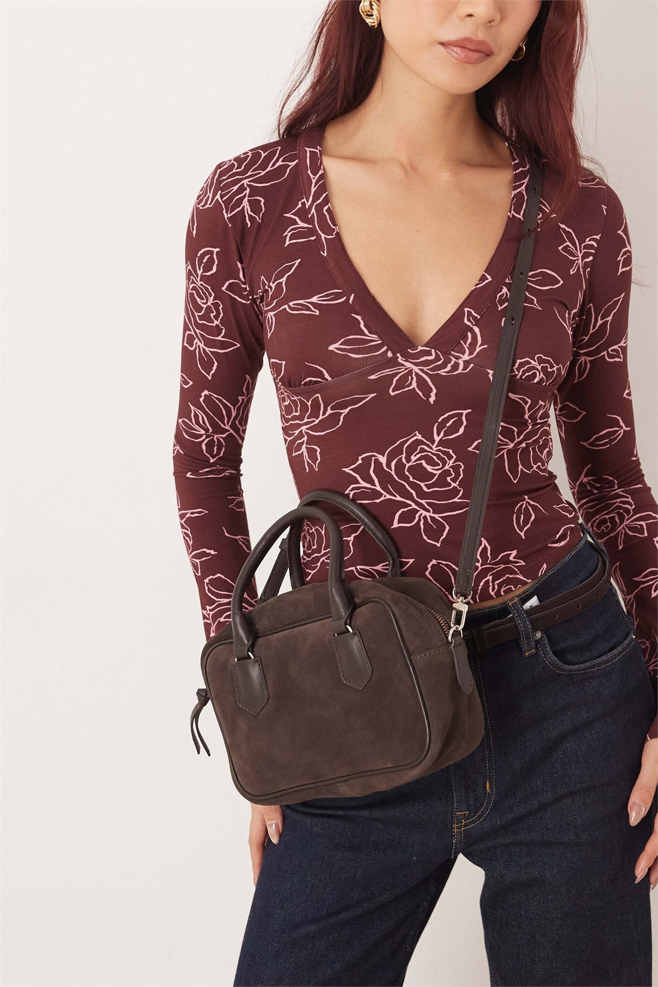 Сумочка-боулер из замши цвета «бриз»