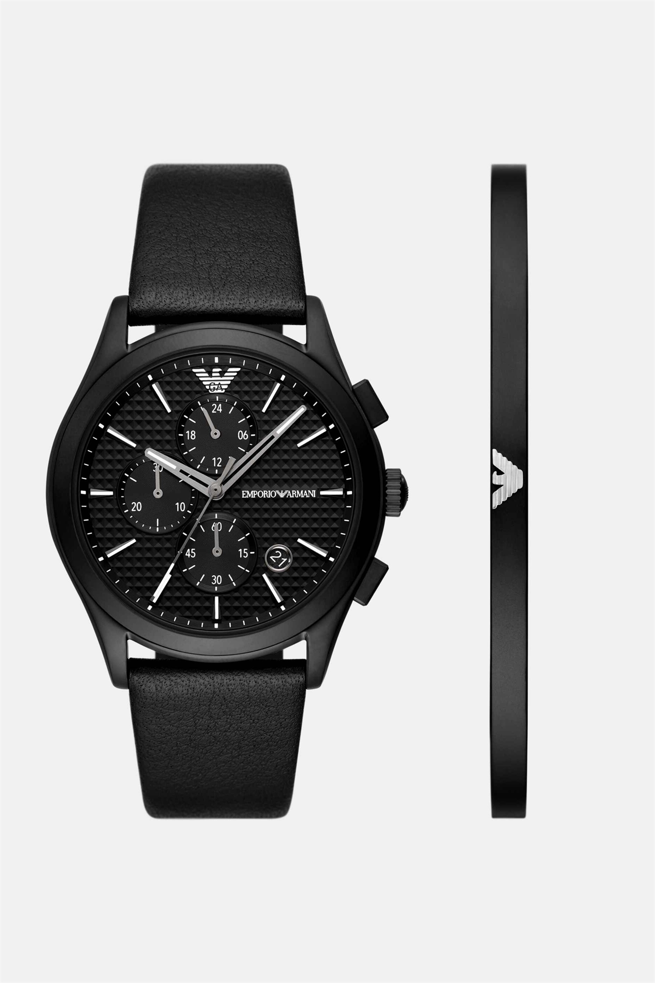Мужской хронограф: комплект из часов и браслета из чёрной нержавеющей стали