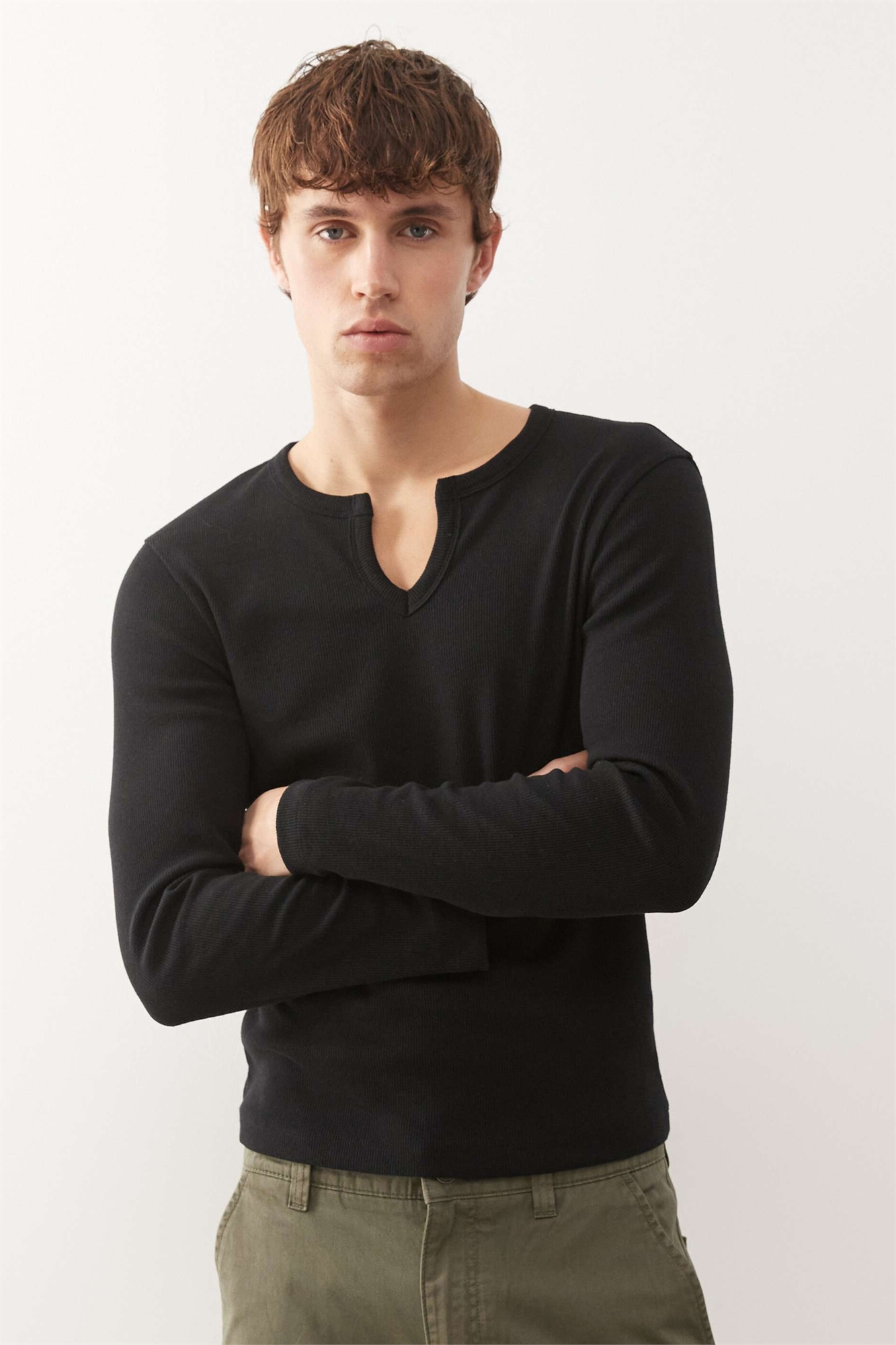 Футболка с длинным рукавом и воротником-хенли, облегающая по шее