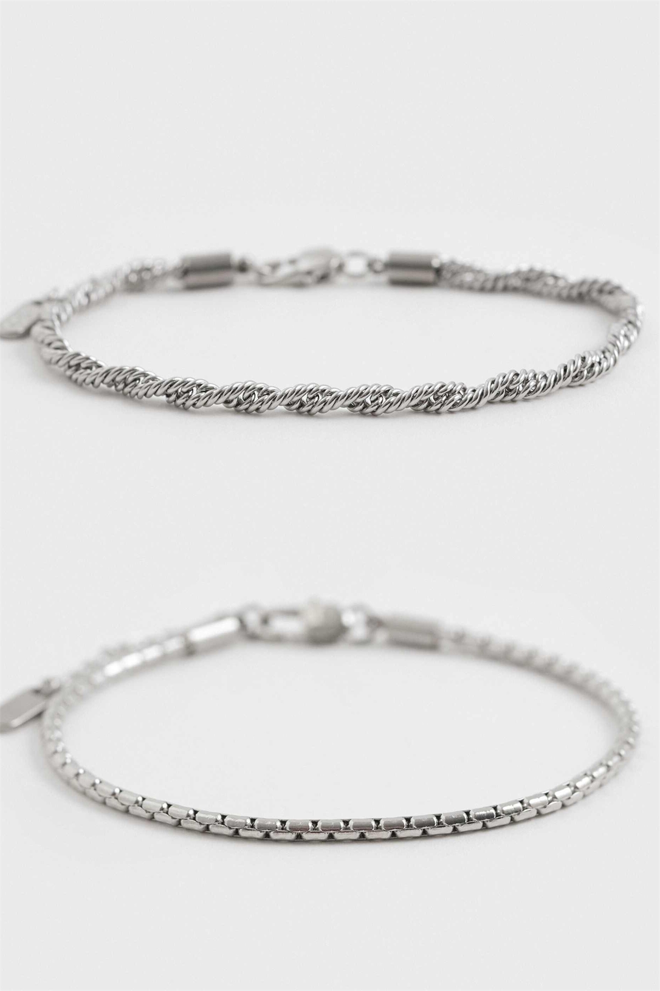 Набор из двух браслетов из нержавеющей стали: один с витой веревкой, другой с косой цепочкой
