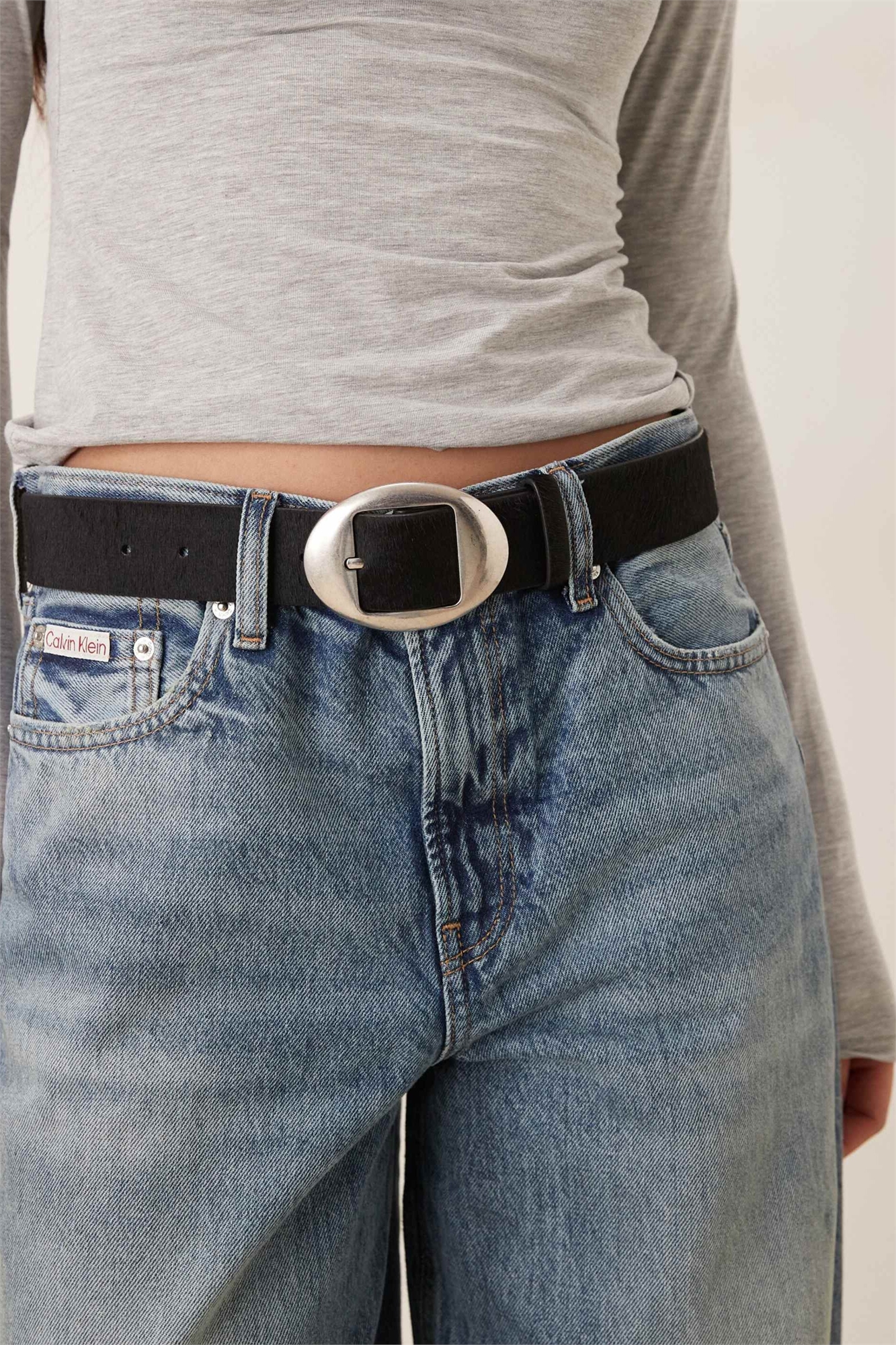 Ремень с овальной пряжкой из 100% кожи