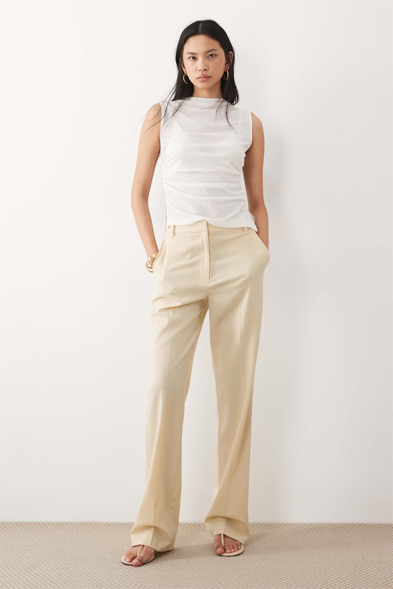 Высокие брюки прямого кроя с зауженными штанинами