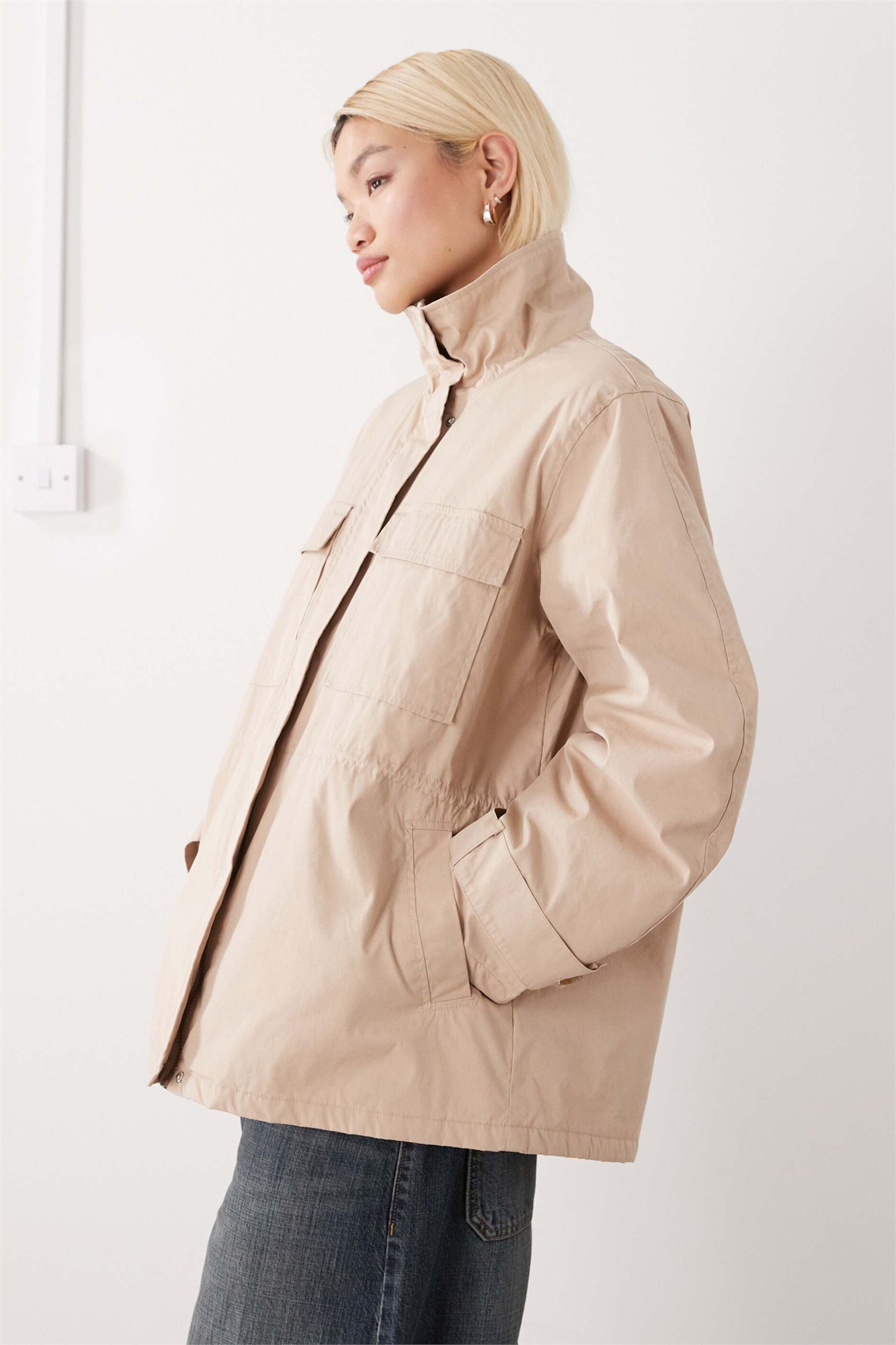 Парка с затянутой талией и съемным меховым воротником