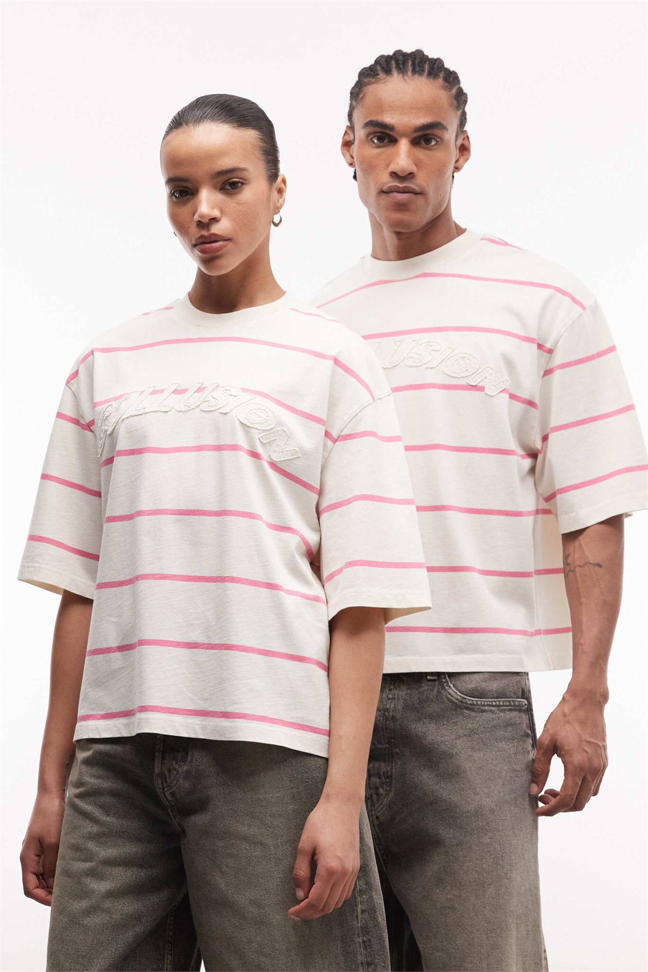 Универсальная футболка свободного кроя с логотипом в полоску