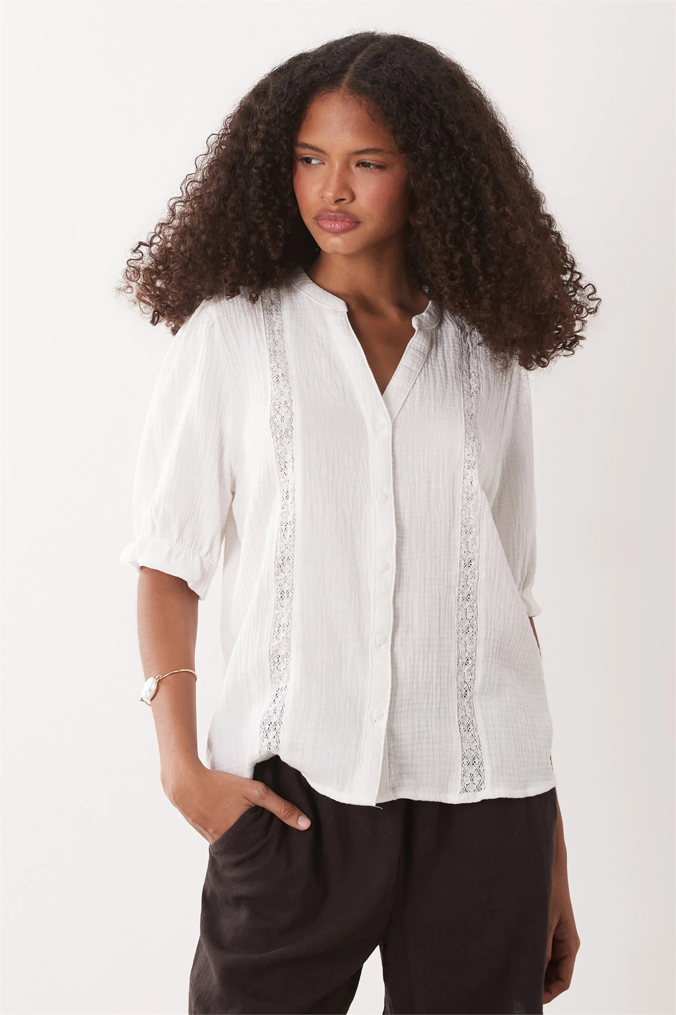 Рубашка из марли с кружевной полоской