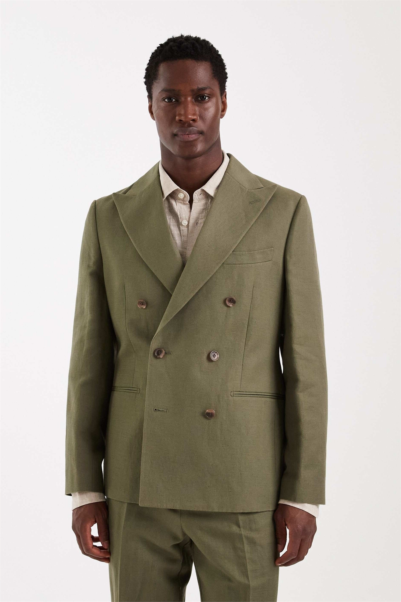 Облегающий пиджак из льна с двойной застежкой