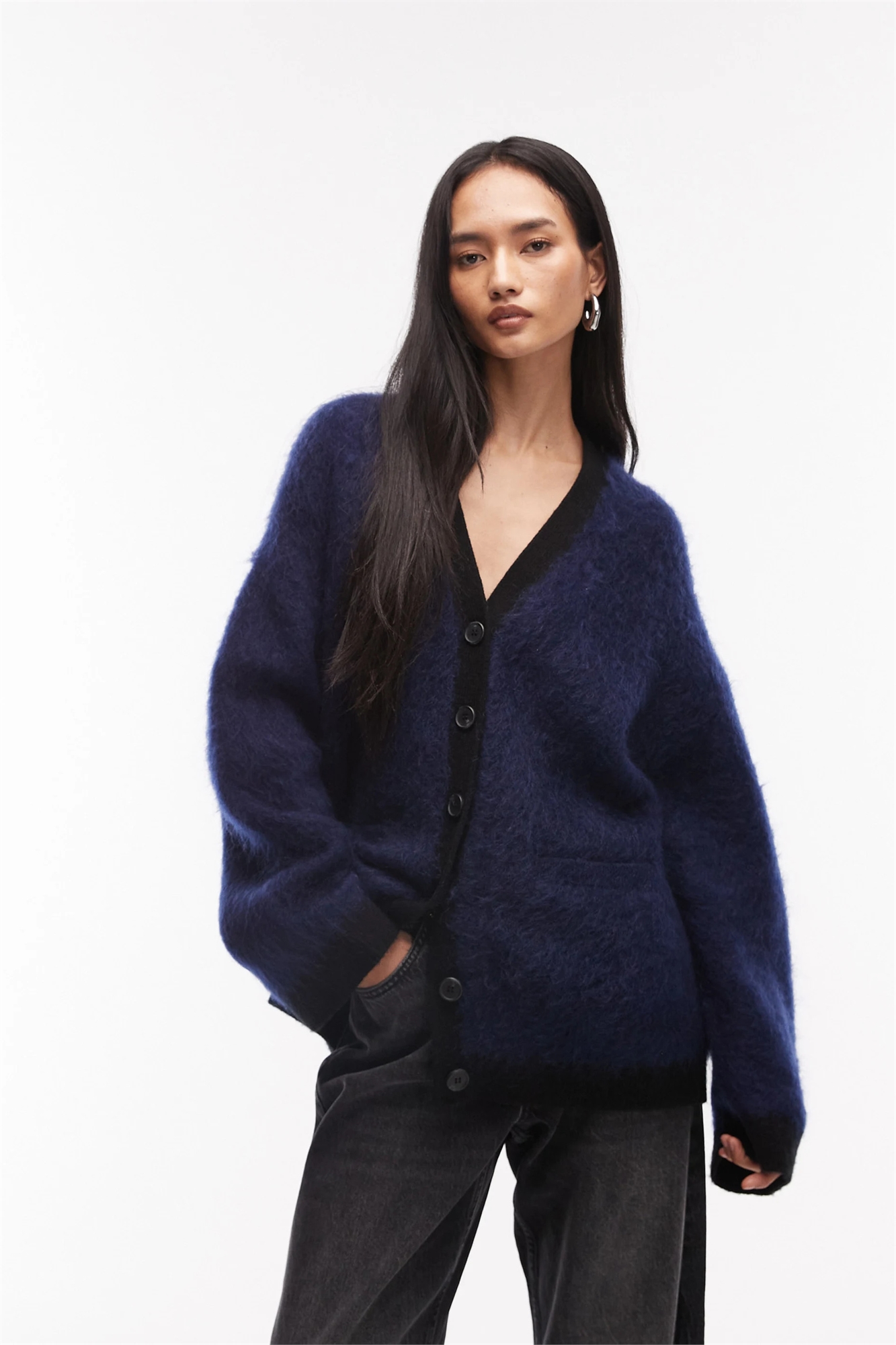 Оверсайз-кардиган из смеси шерсти и мохера с контрастными карманами