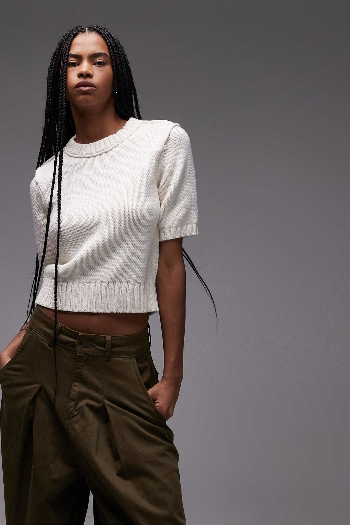 Свитер с короткими рукавами из смеси шерсти и хлопка