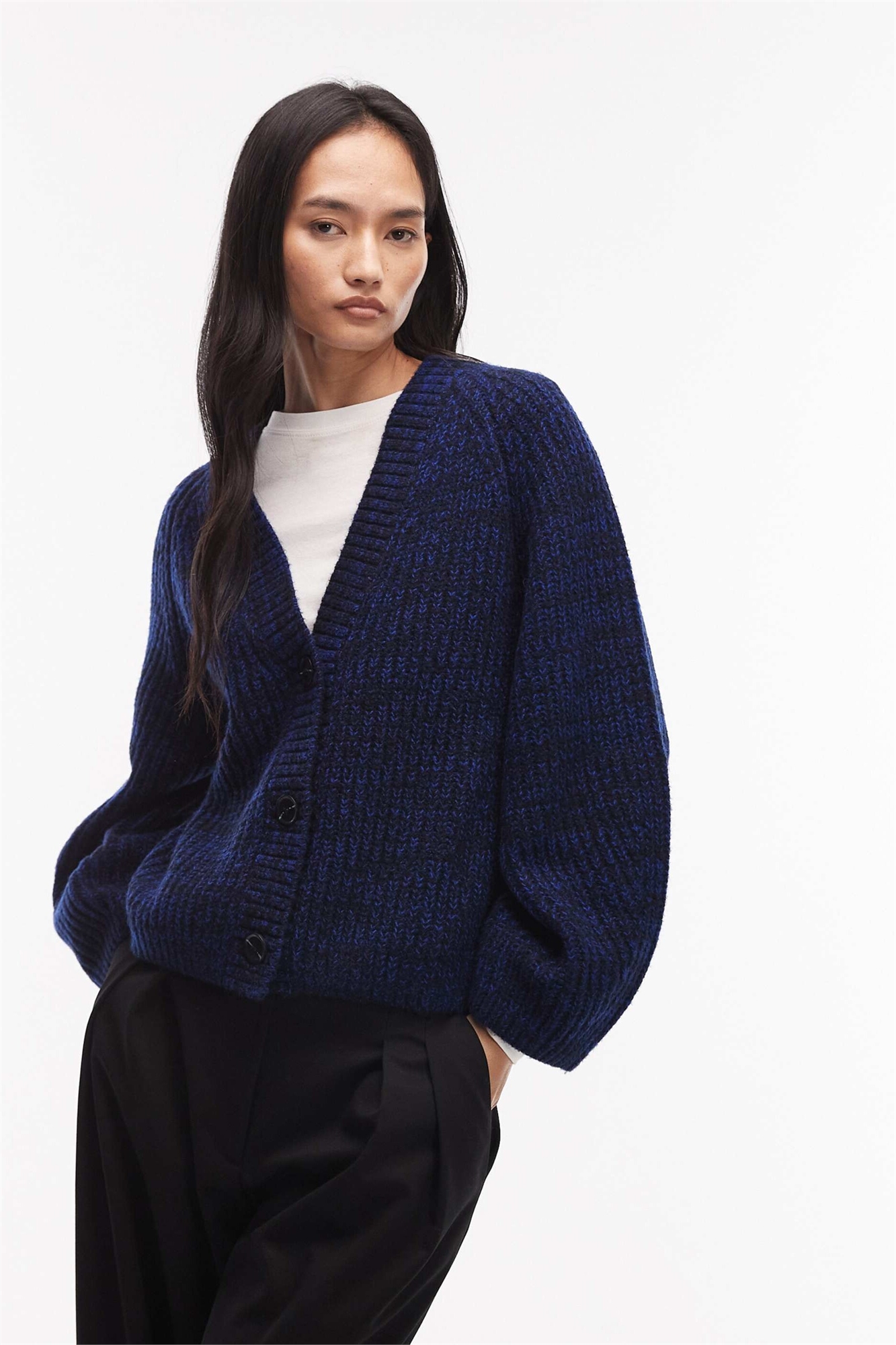 Кардиган с V-образным вырезом из смеси шерсти и хлопка с узором «коса»