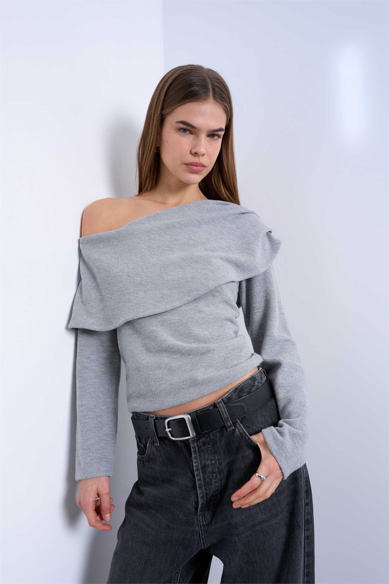 Асимметричный топ с длинными рукавами, с эффектом «софт-тач» и драпировкой в стиле «бардо»