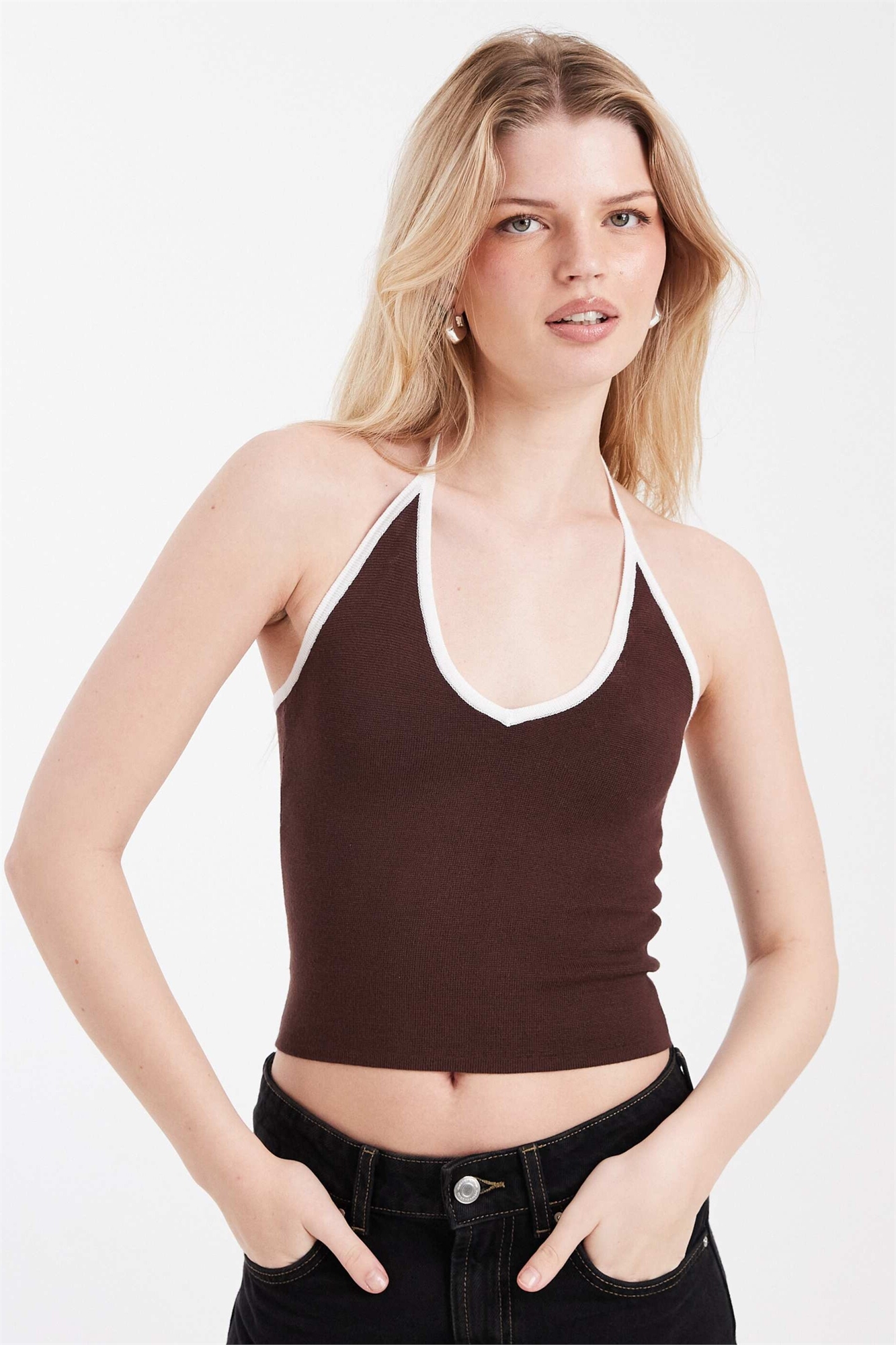 Трикотажный топ с контрастной окантовкой