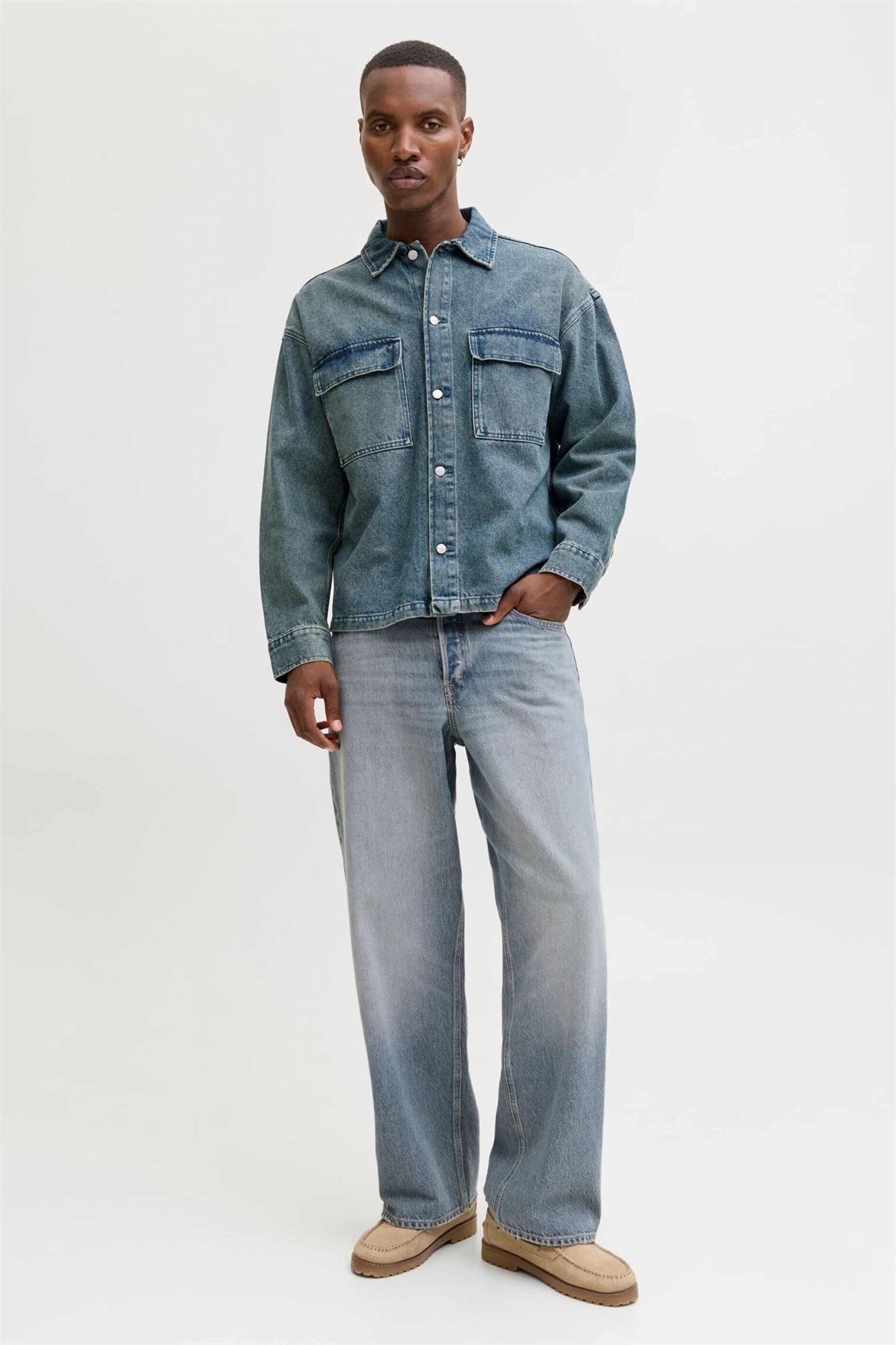 Неэластичный деним: средне-синий оттенок Основной материал: 100% хлопок.