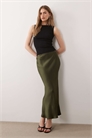 Юбка средней длины из атласа с косой отрезкой