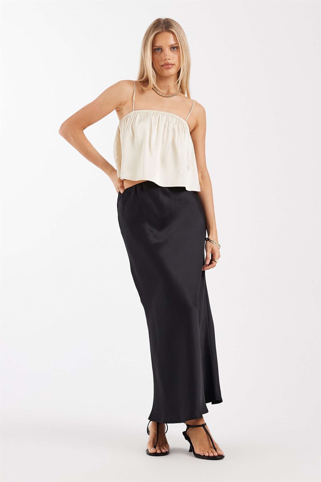 Макси-юбка из атласа с косой отрезкой