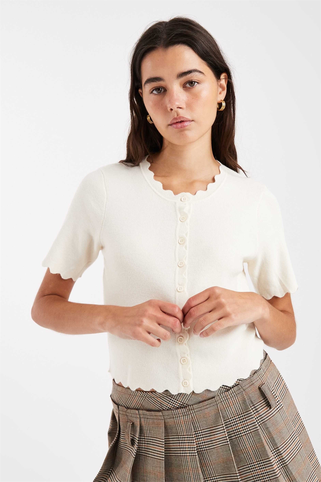 Кардиган с короткими рукавами и волнистым краем
