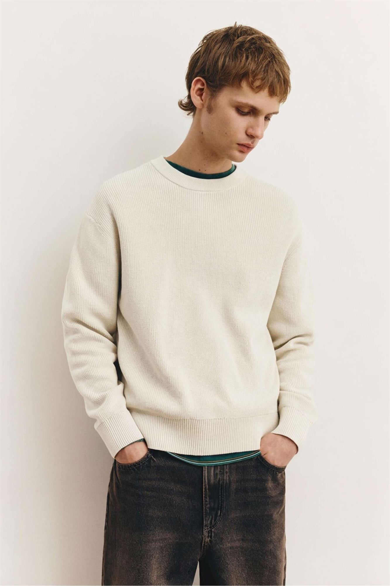 Свитер с круглым вырезом и четкой структурой