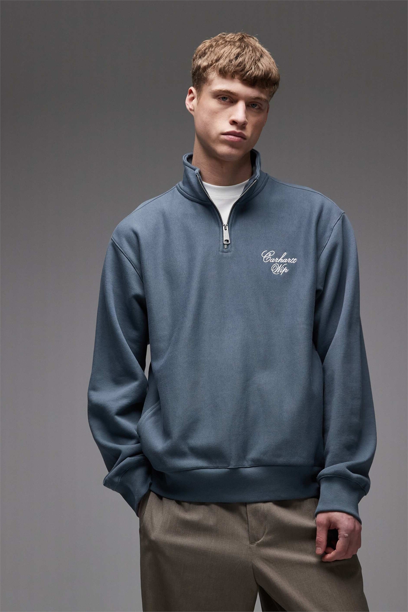 Свитшот с длинными рукавами и полузастежкой-молнией