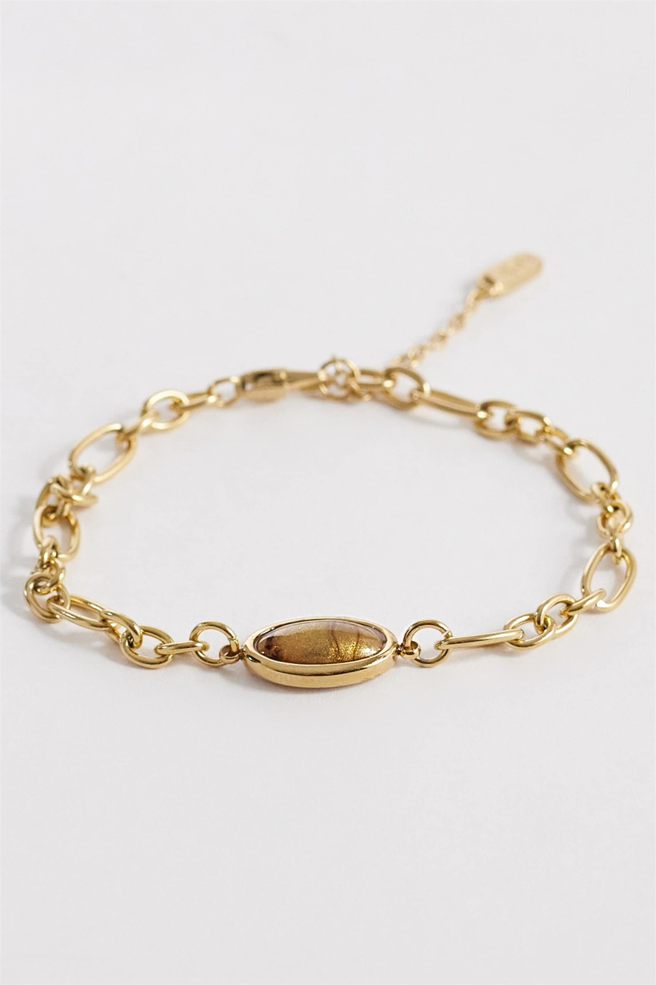 Водонепроницаемый браслет из нержавеющей стали в форме овала с имитацией тигрового глаза