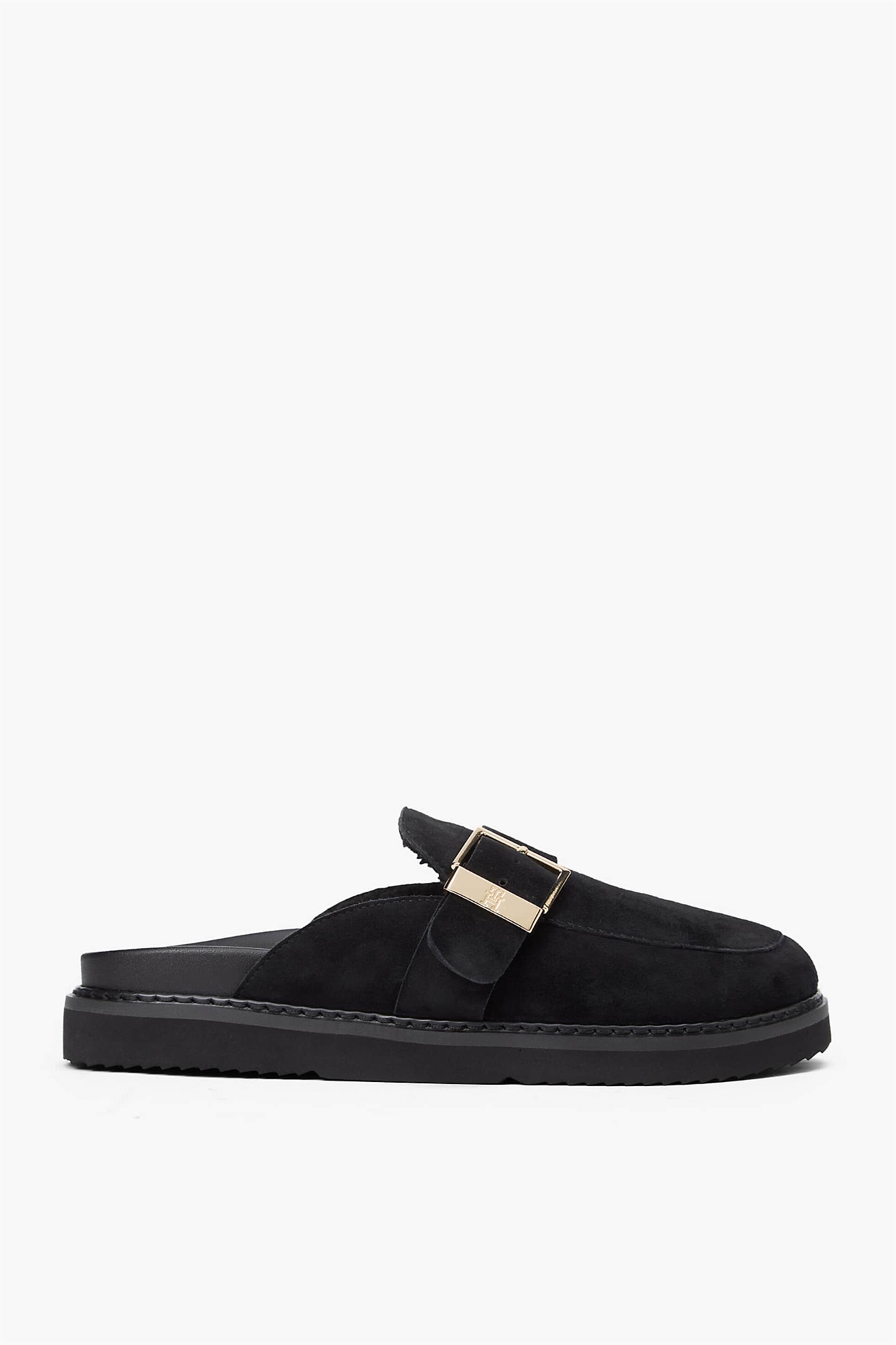 Замшевые туфли-муле с пряжкой с монограммой