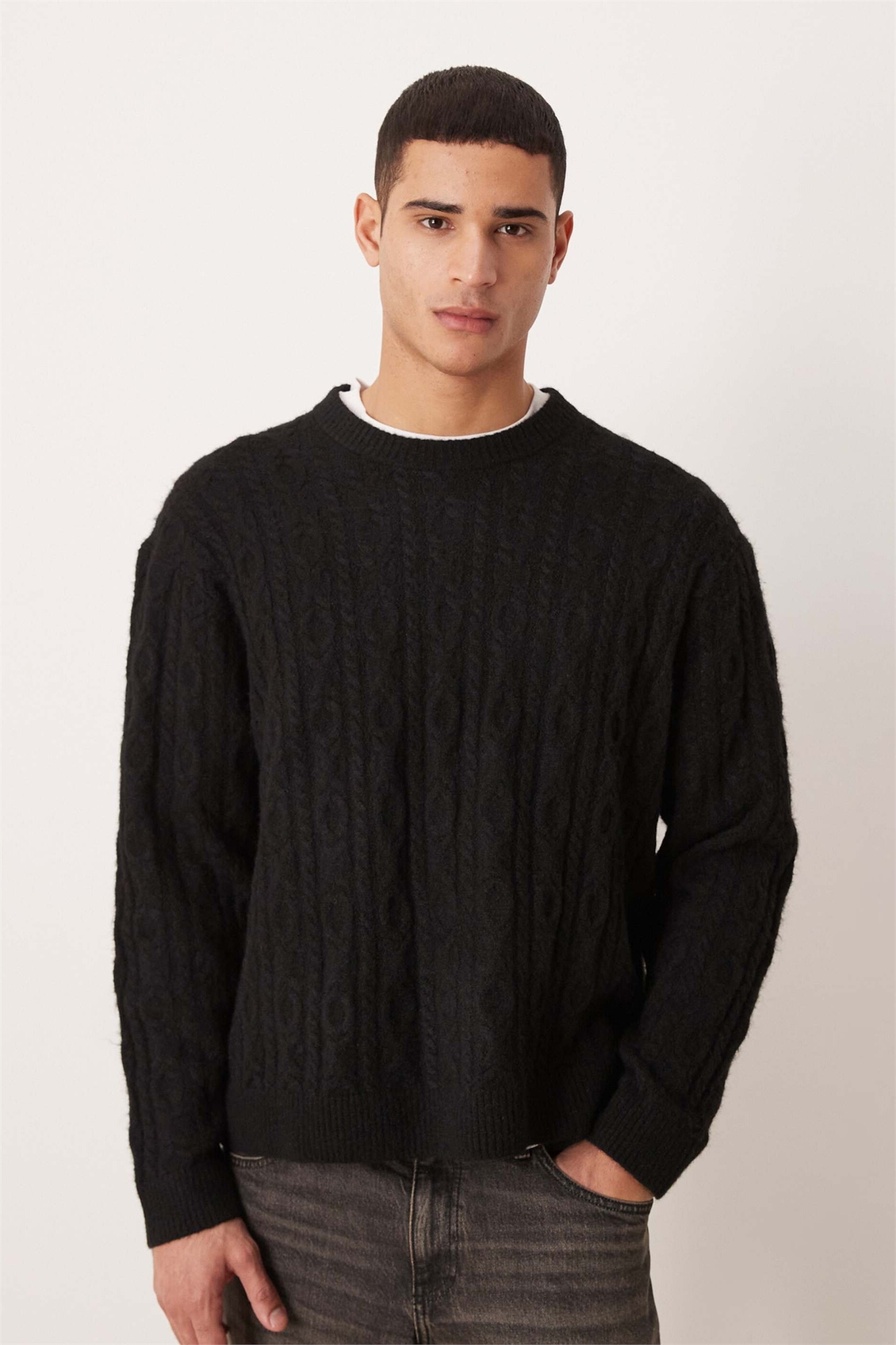 Свитер с косой вязкой