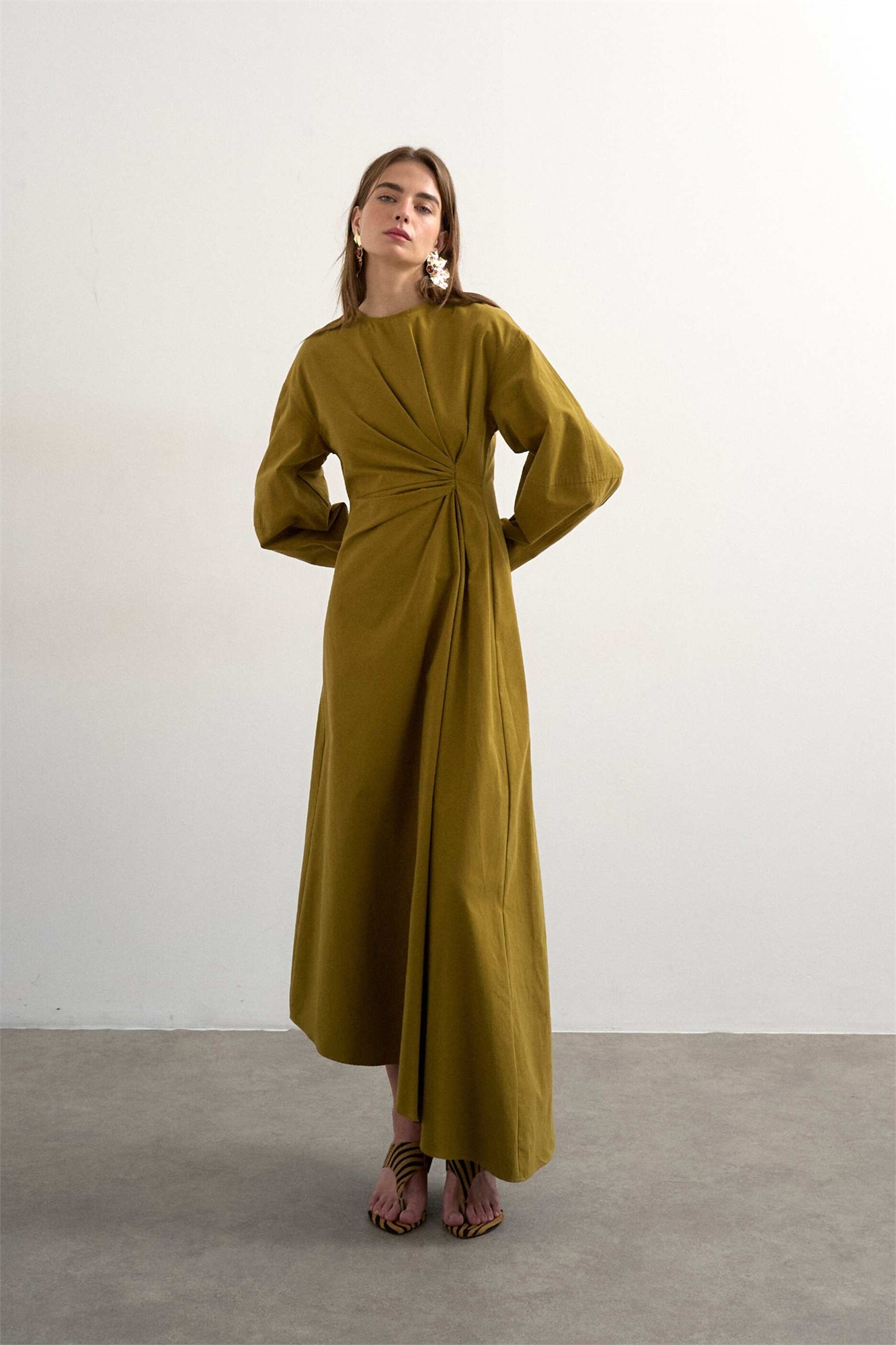 Платье средней длины с завязками и асимметричным подолом