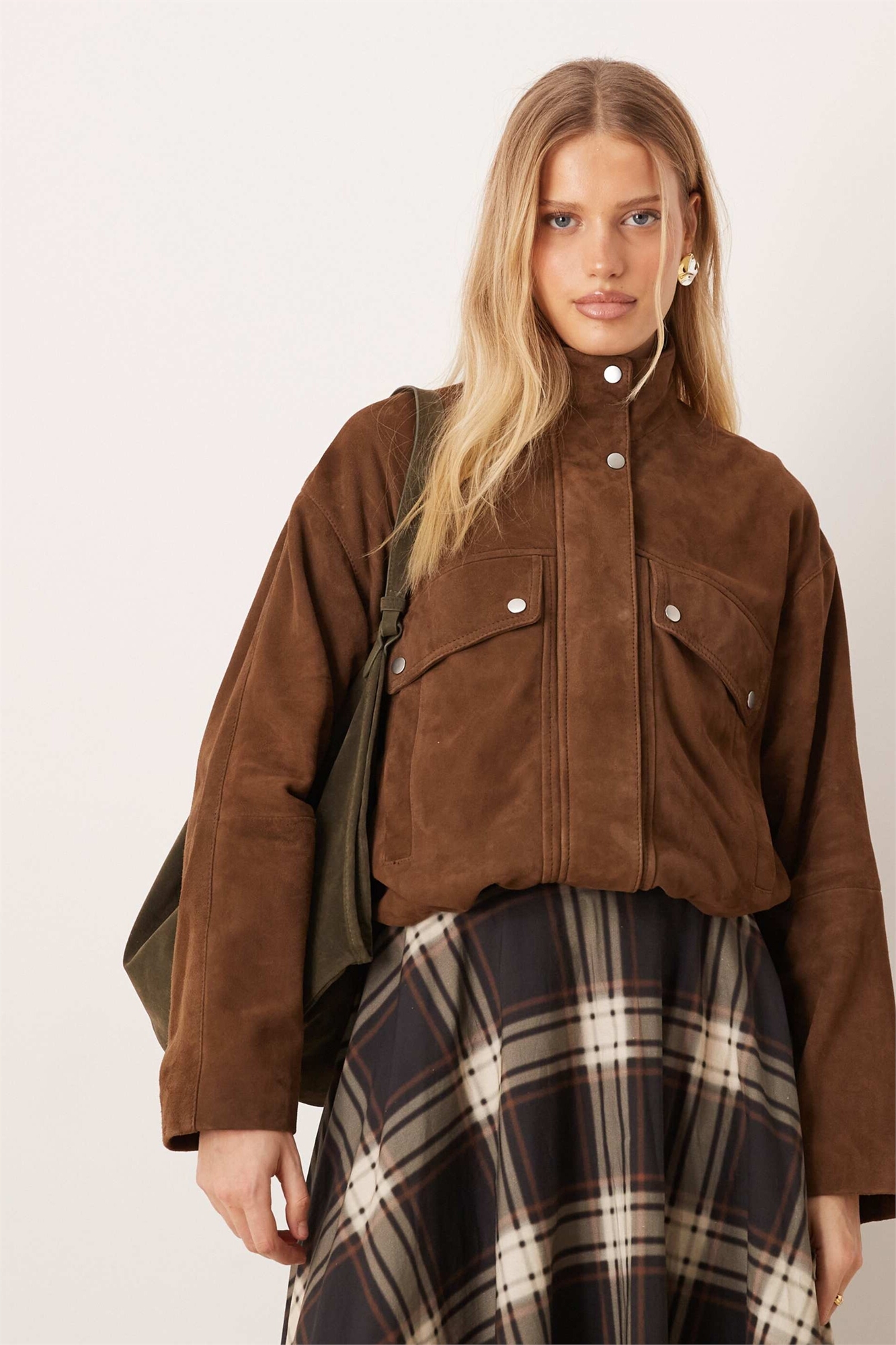 Куртка с воротником-воронкой из натуральной замши