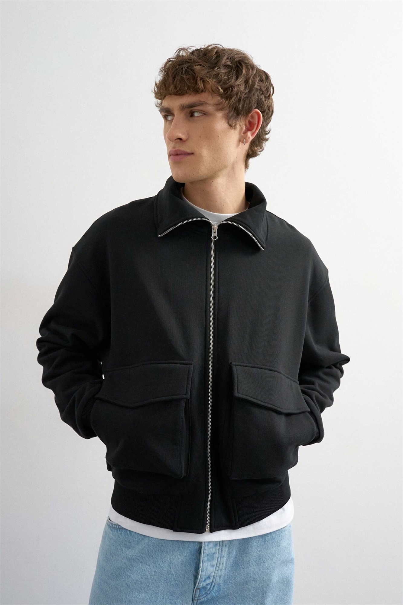 Универсальная куртка-рубашка свободного кроя из джерси с воротником-воронкой